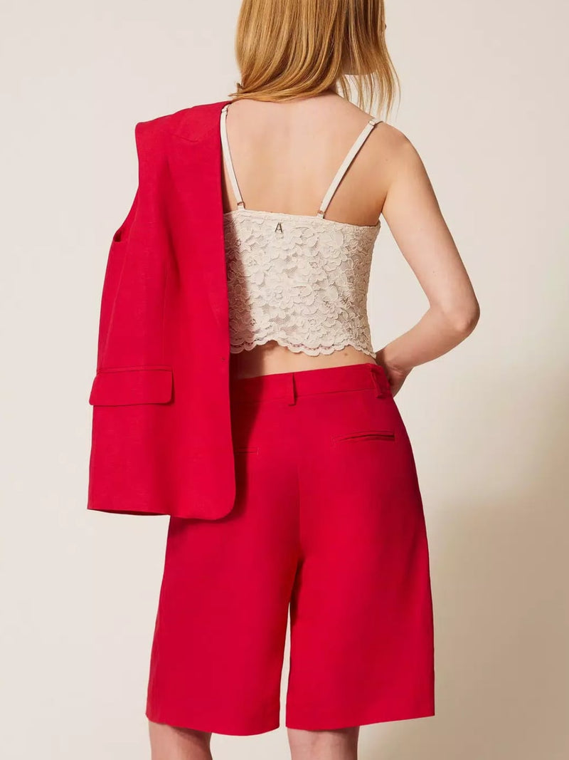 Twinset Bermuda in misto lino Rosso "Magenta"