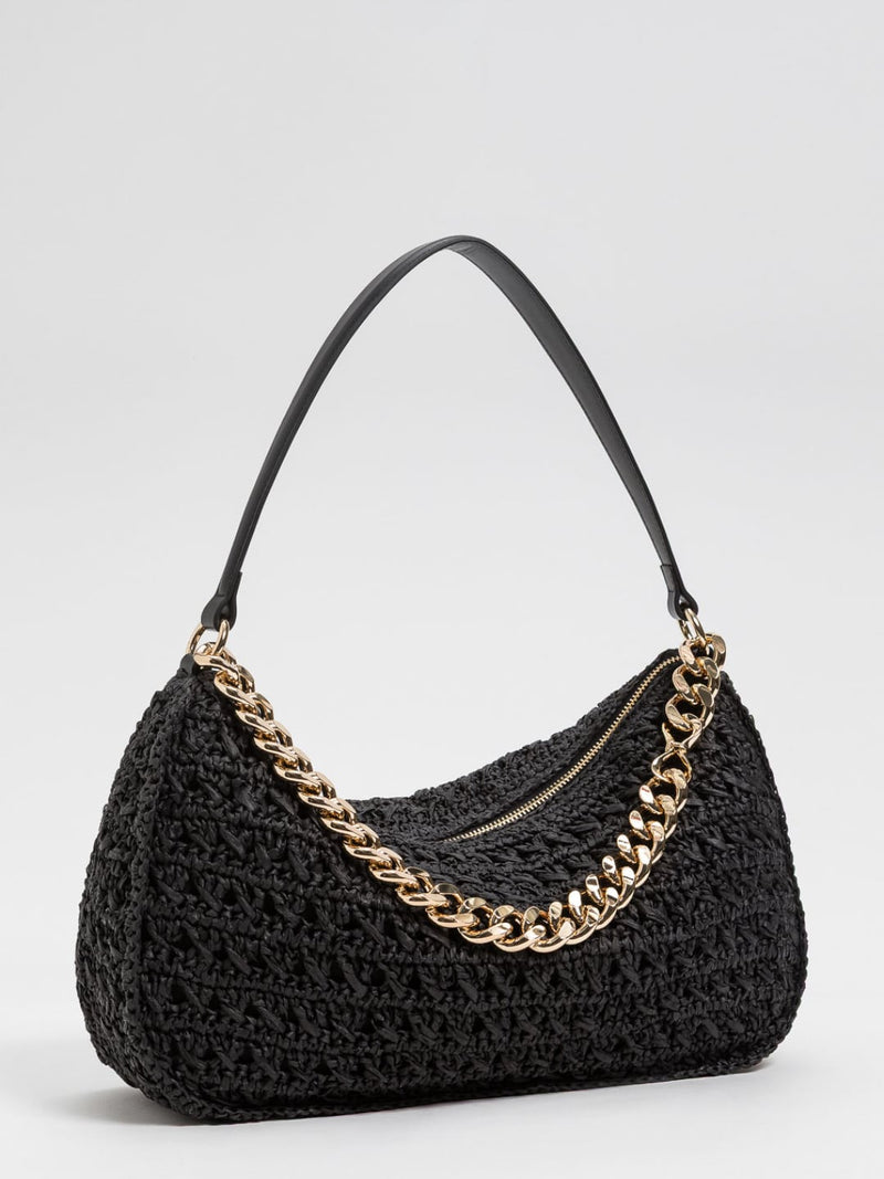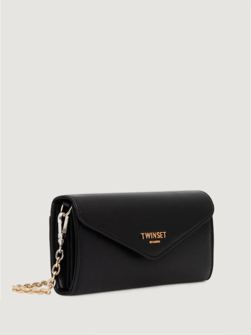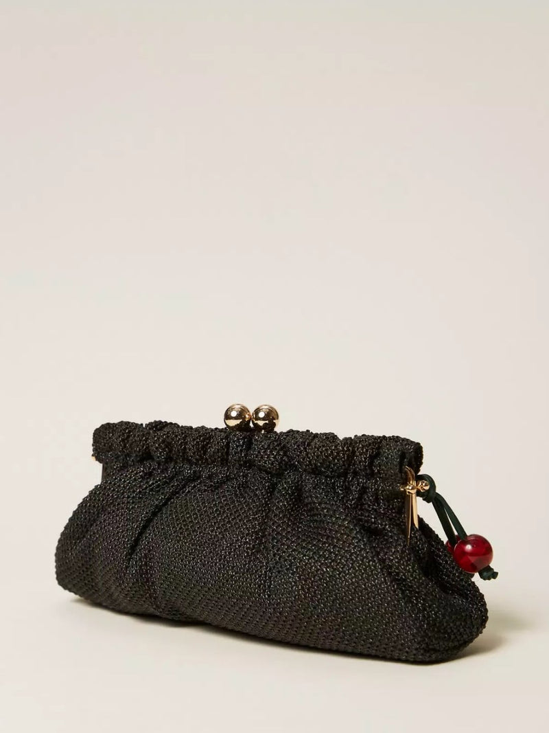 Twinset Borsa clutch in rafia con charm Nero