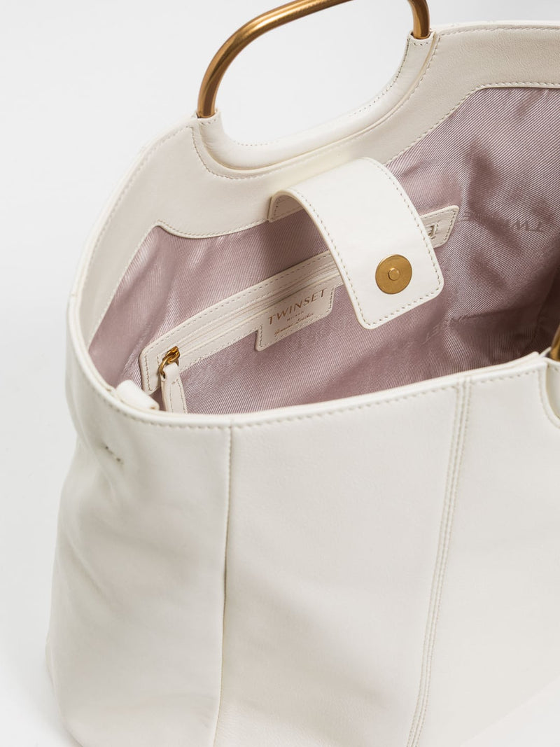 Twinset Tote 'Ellisse’ grande in pelle Bianco Madreperla