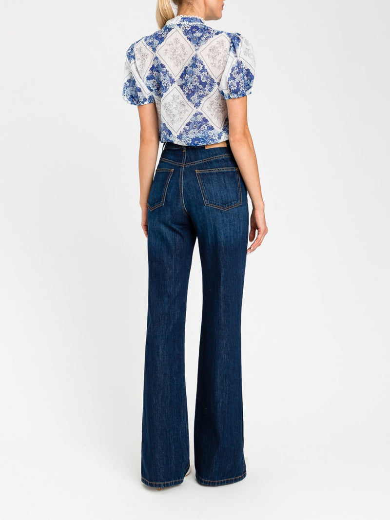 Twinset Camicia Twinset in ramie con Stampa a rombi Blu / Topazio