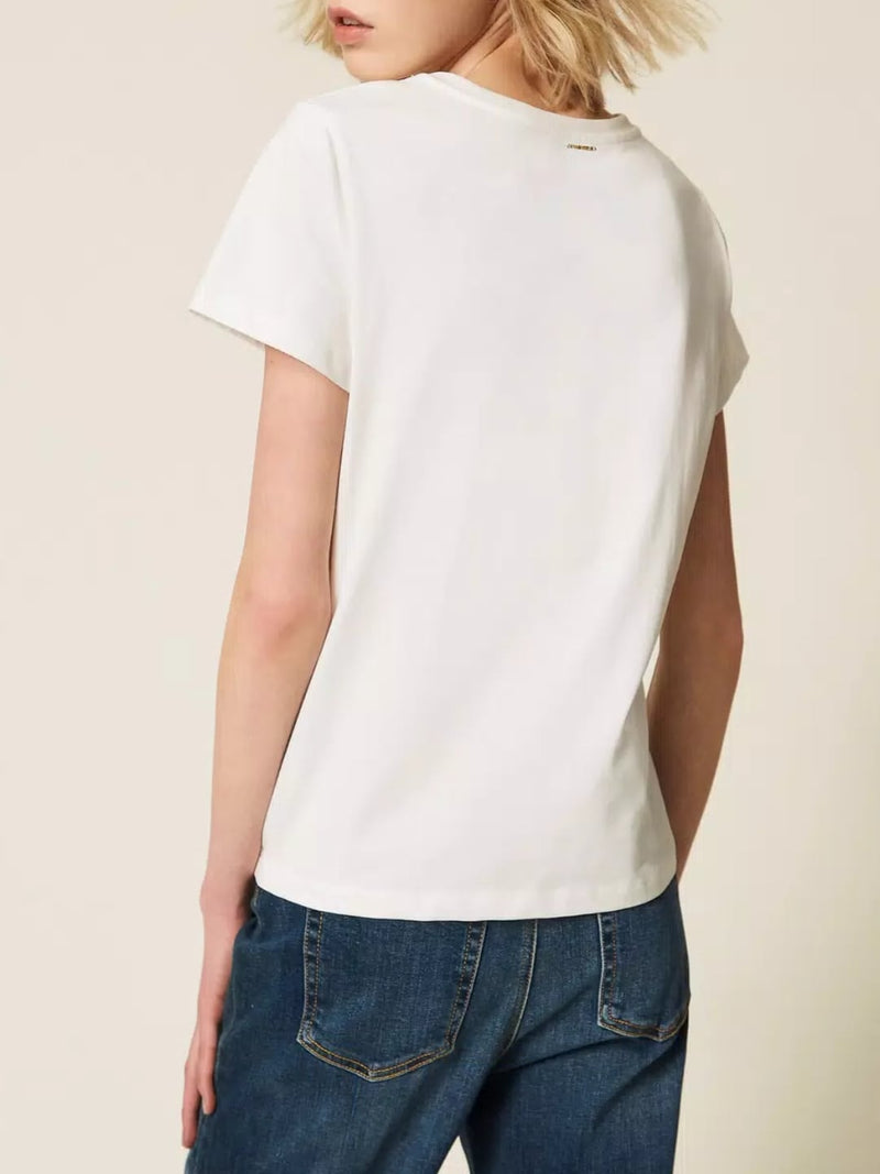 Twinset T-shirt in cotone effetto pizzo Bianco