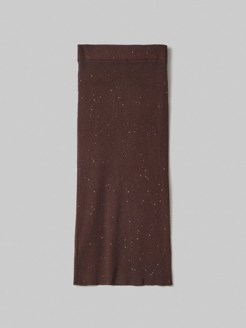 Hinnominate Gonna Midi Con Ampio Spacco In Costina Con Paillettes Moro