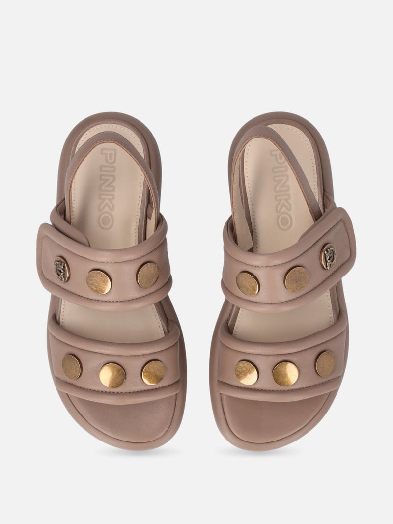 Pinko Sandali FIONA imbottiti in nappa con dettagli metallici Tabacco