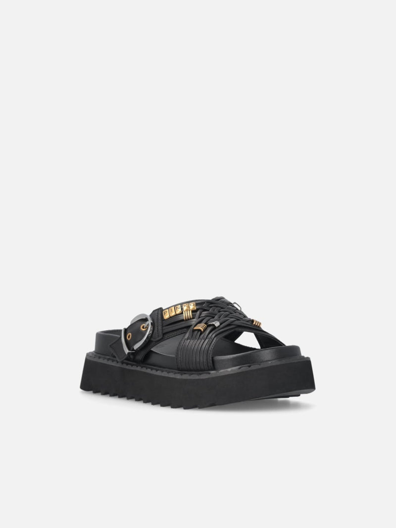 Pinko Sandali slide in nappa intrecciata con anelli metallici Nero