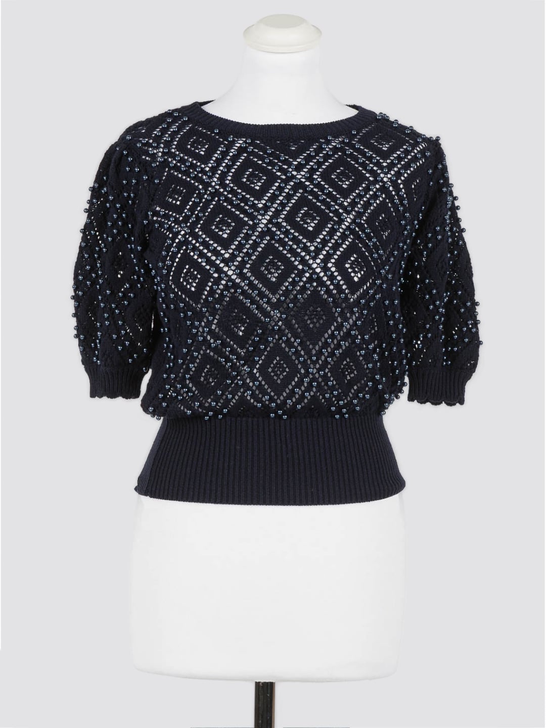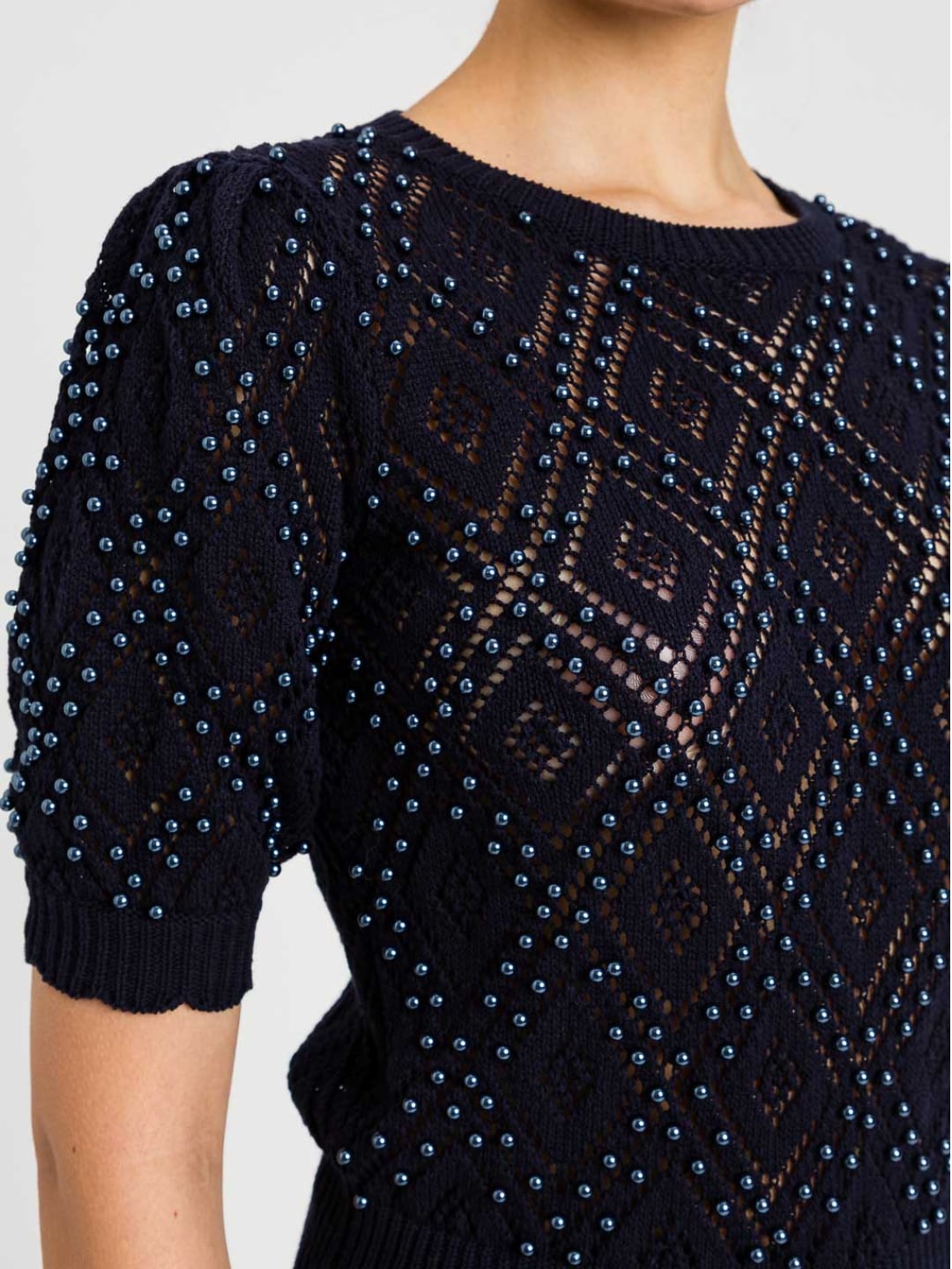 Twinset Maglia a losanghe con perle Blu Night