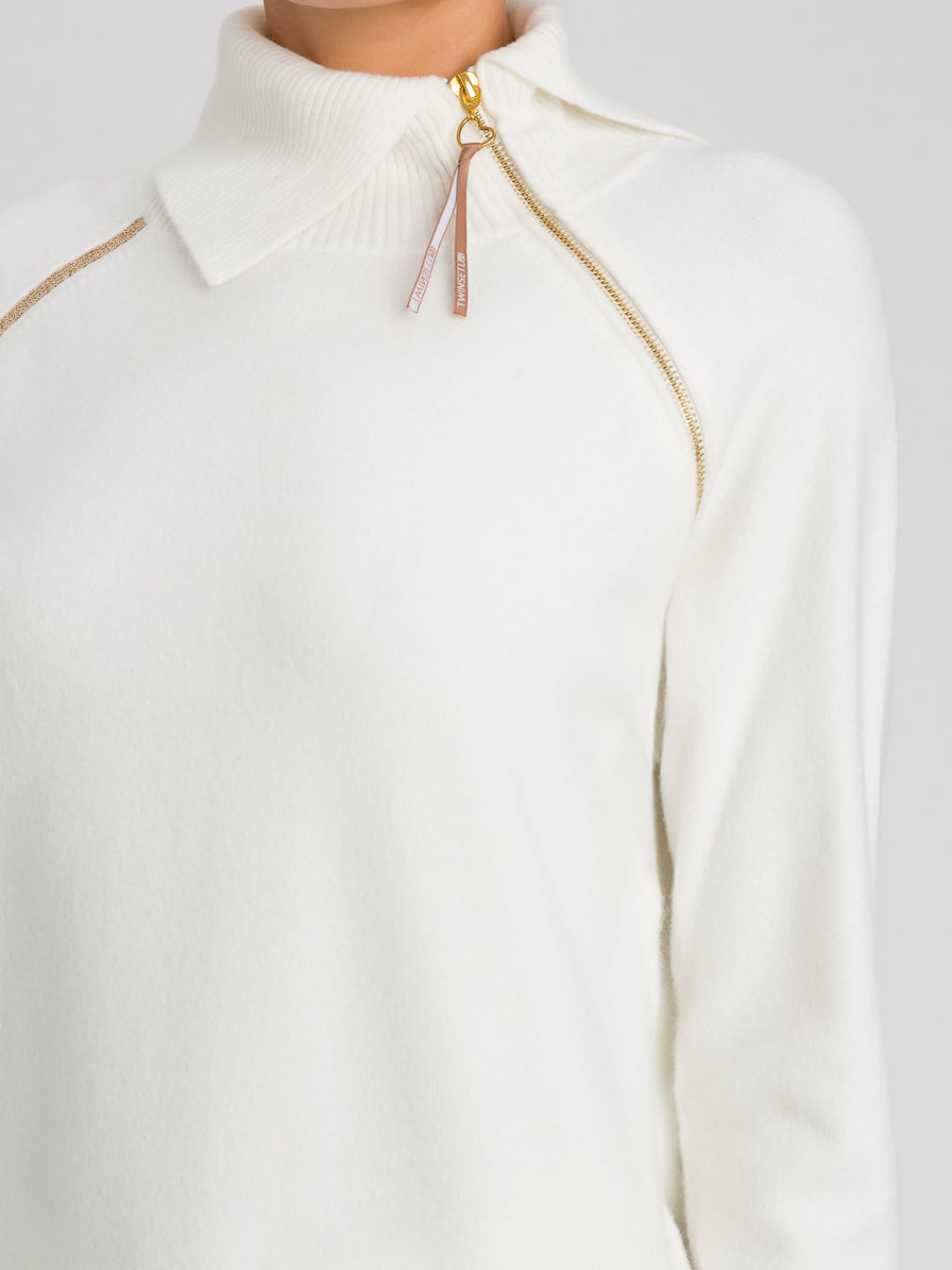 Maglia Twinset in Lana Panna con Zip sul Collo: Elegante maglia in lana con dettaglio zip, perfetta per un look sofisticato e versatile. Calda e confortevole, è ideale per l’inverno.