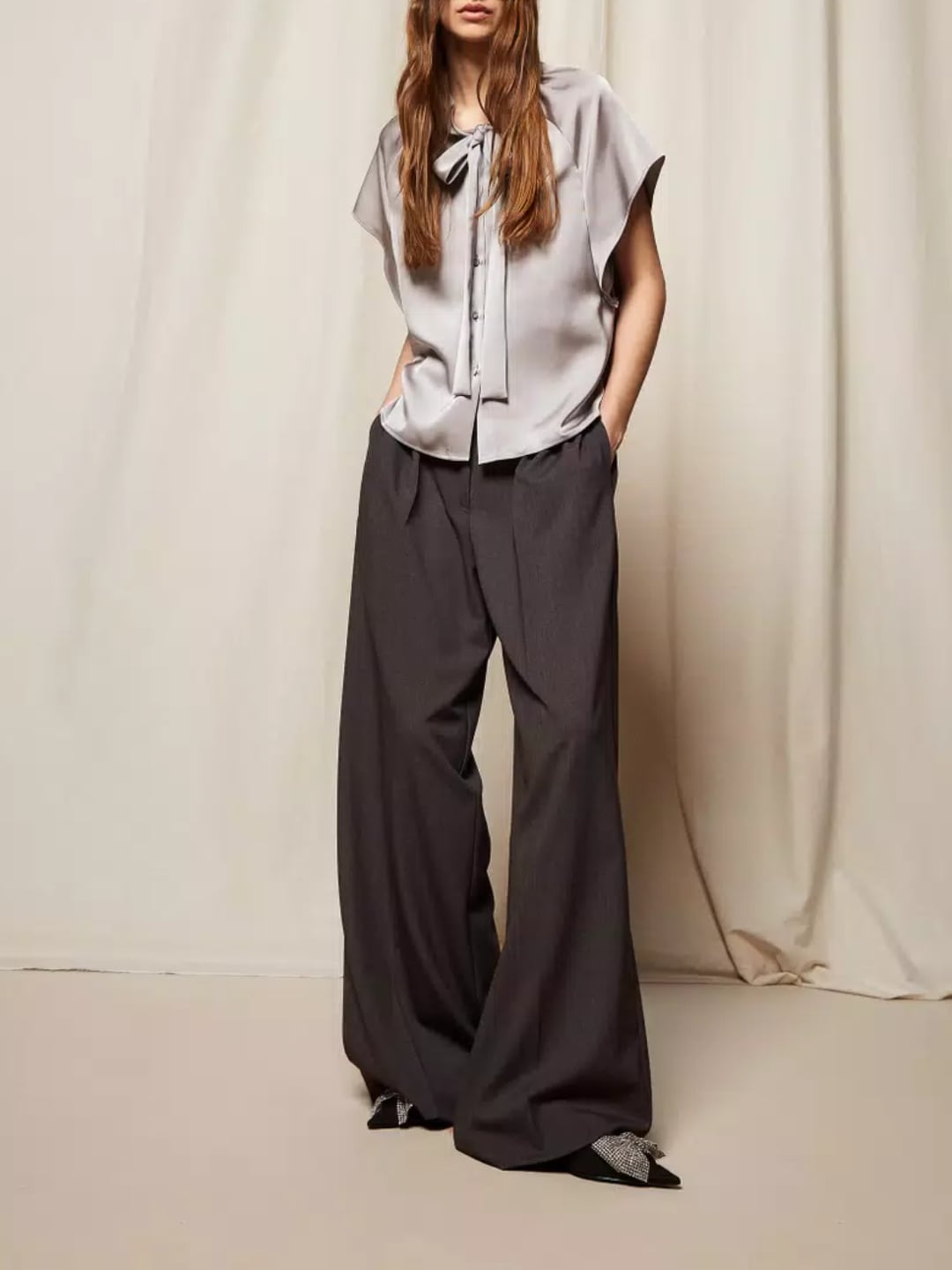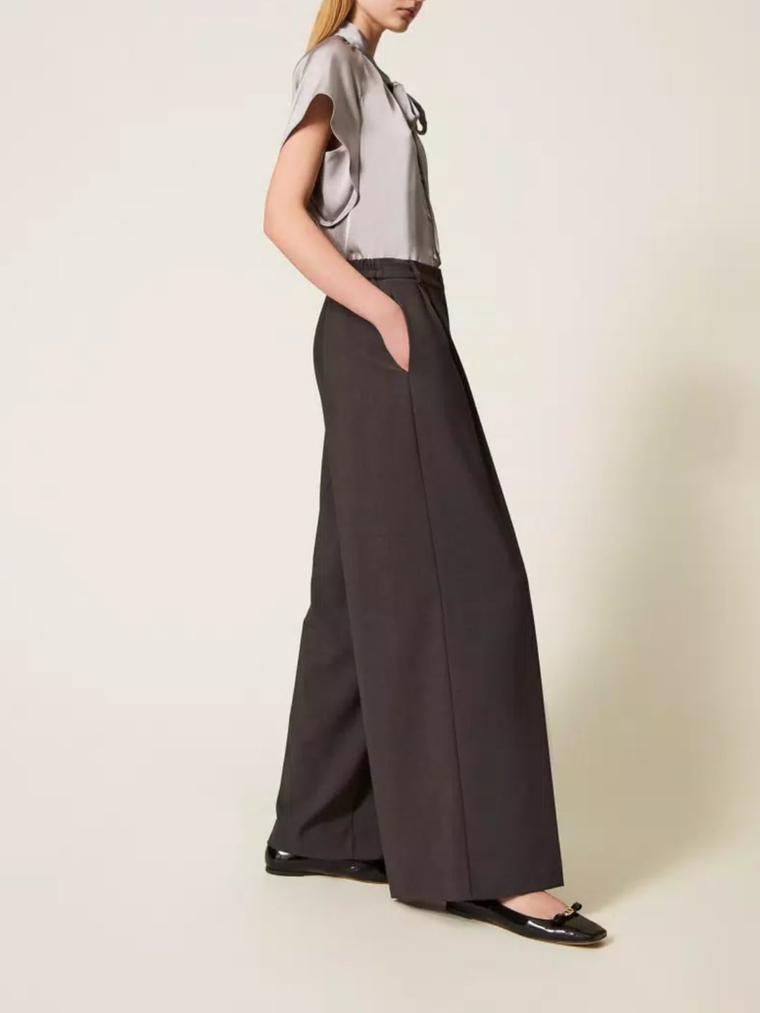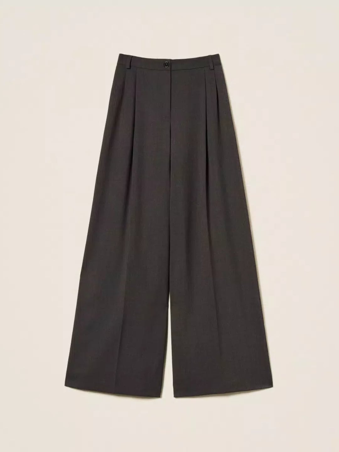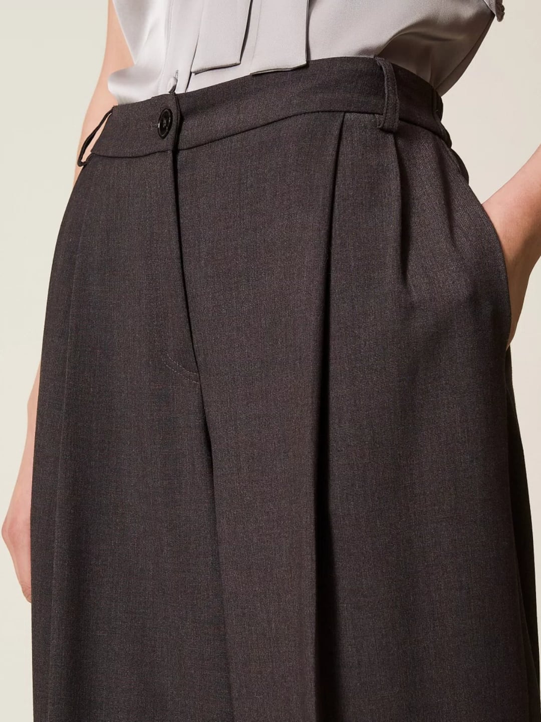 Twinset Pantaloni a palazzo con pieghe Grigio Antracite Melange