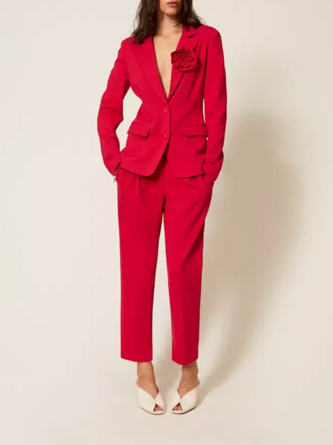 Twinset Pantaloni a sigaretta con spacchetti Rosso "Magenta"