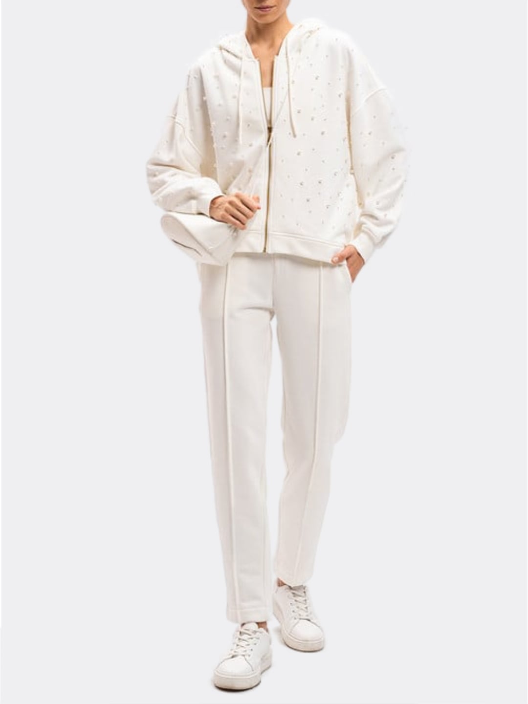Twinset Pantaloni a sigaretta in felpa Bianco Antique