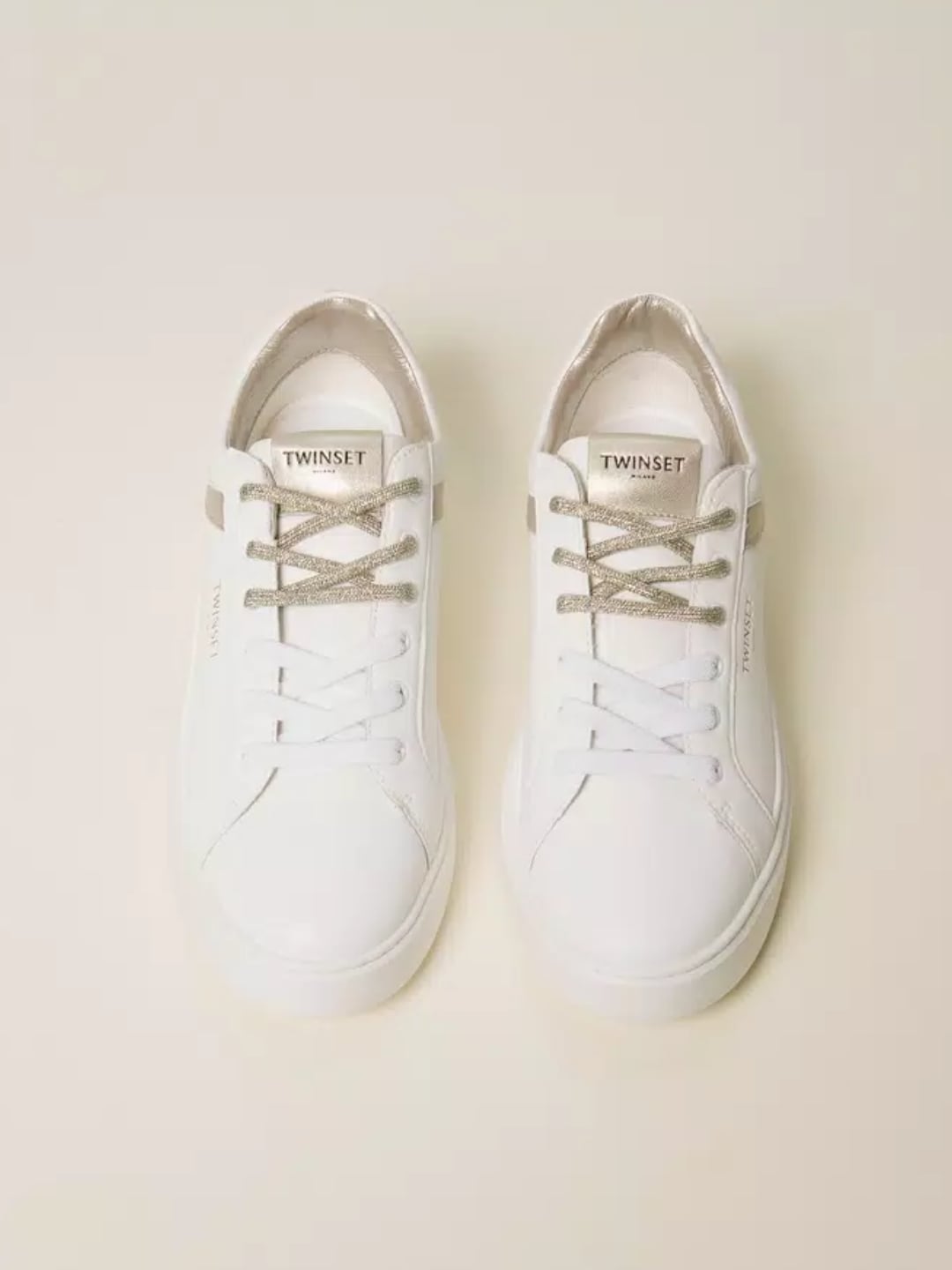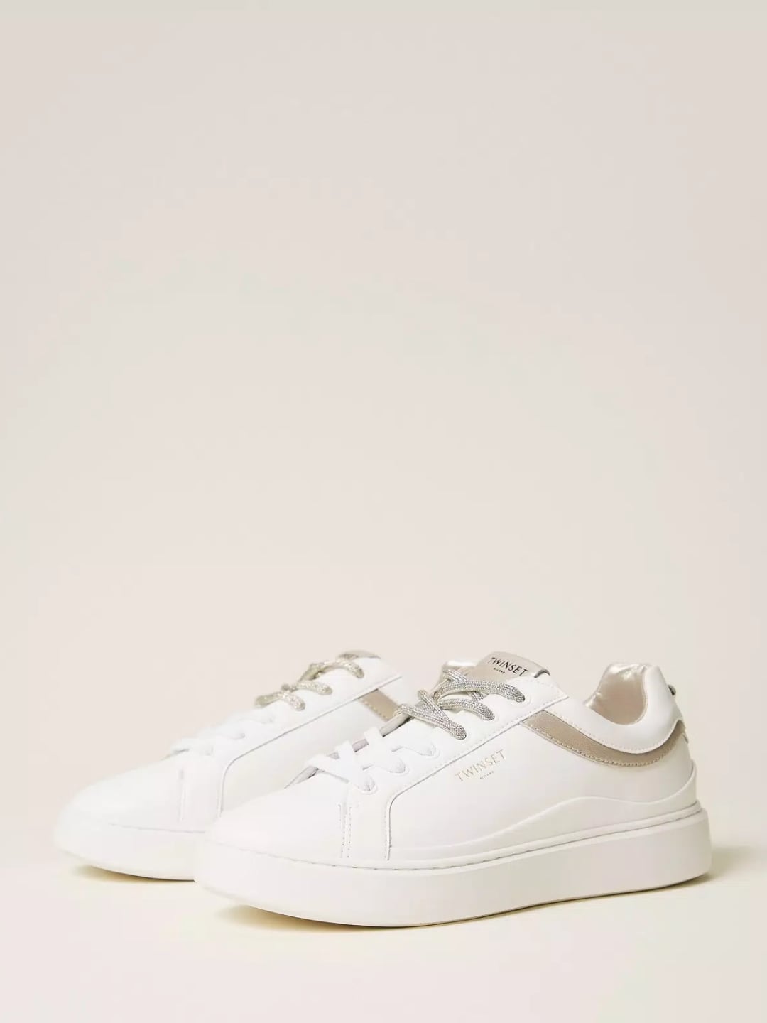 Twinset Sneakers in pelle con inserti a contrasto Bicolor Bianco Ottico / Platino