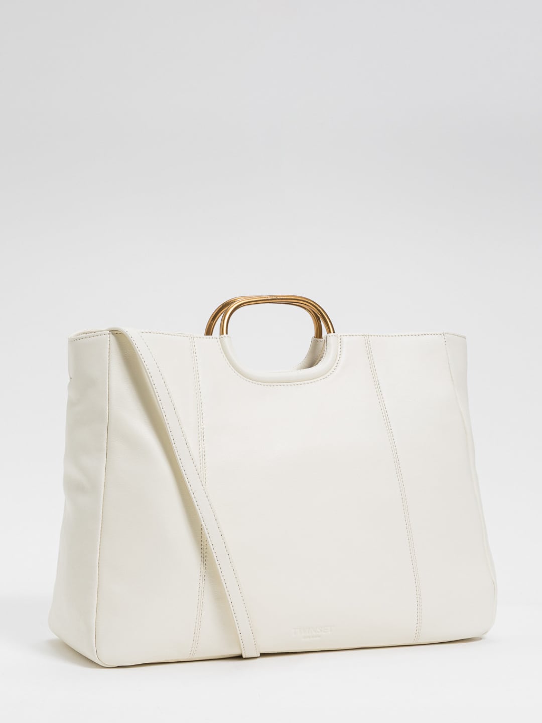 Twinset Tote 'Ellisse’ grande in pelle Bianco Madreperla