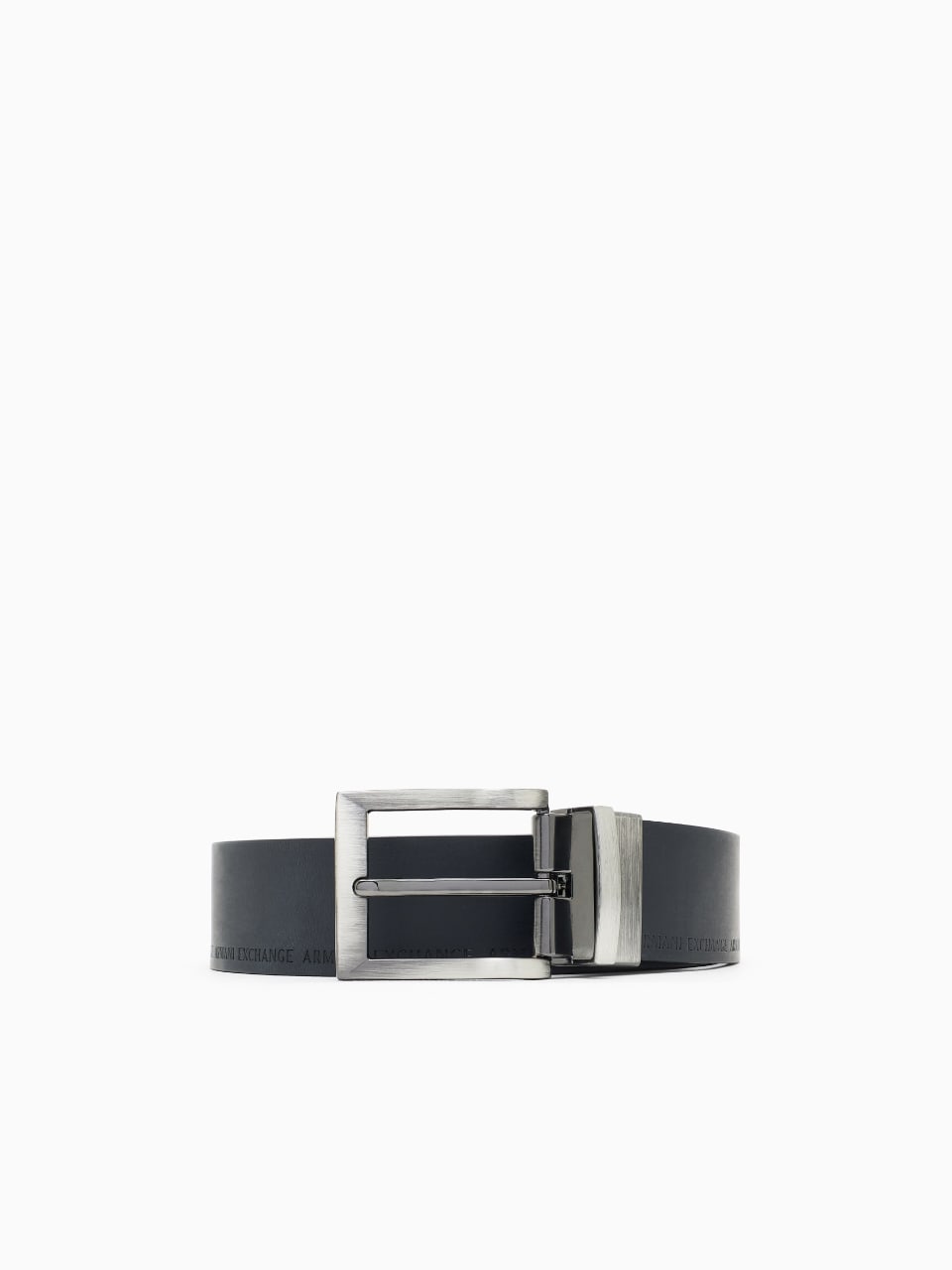 Armani Exchange Cintura in Pelle con Logo Deep Navy / Dark Gull