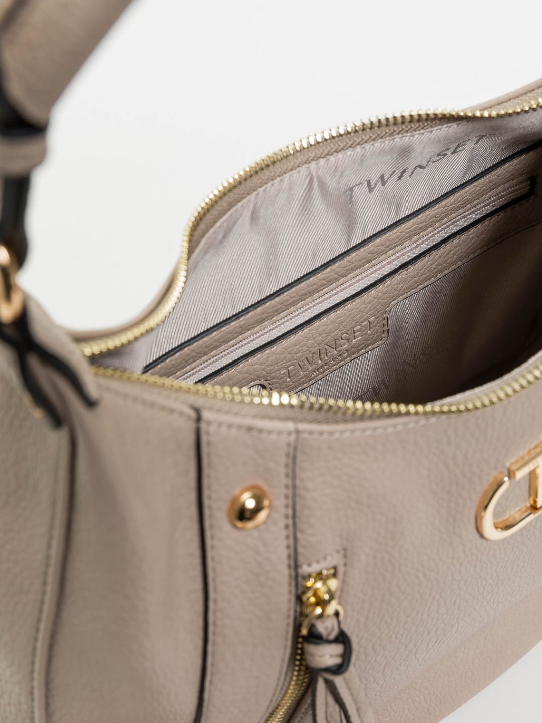 Borsa a spalla con design arrotondato Tortora Chiaro