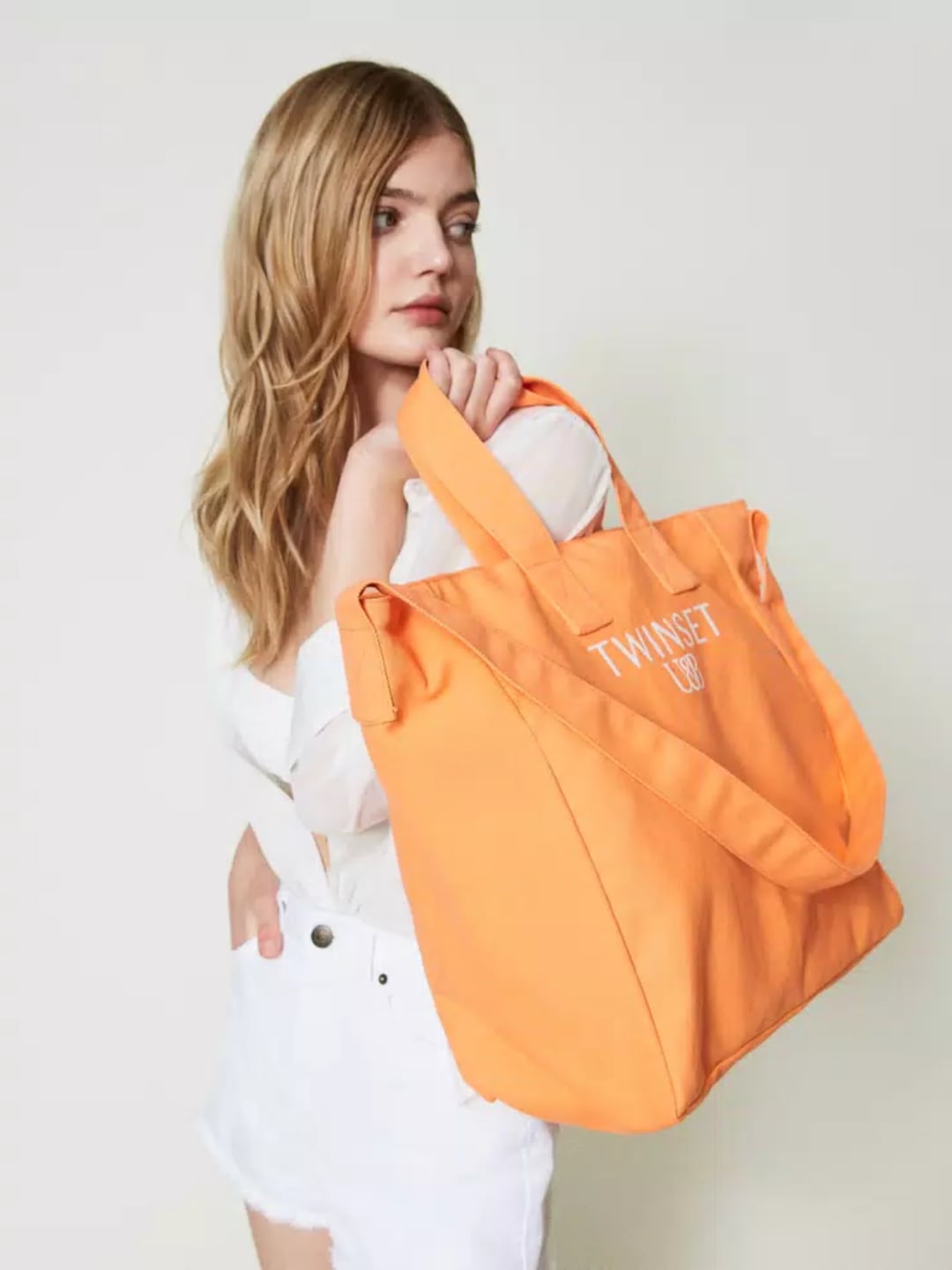 Borsa shopper in canvas con logo Col. Arancione "Summer Orange"