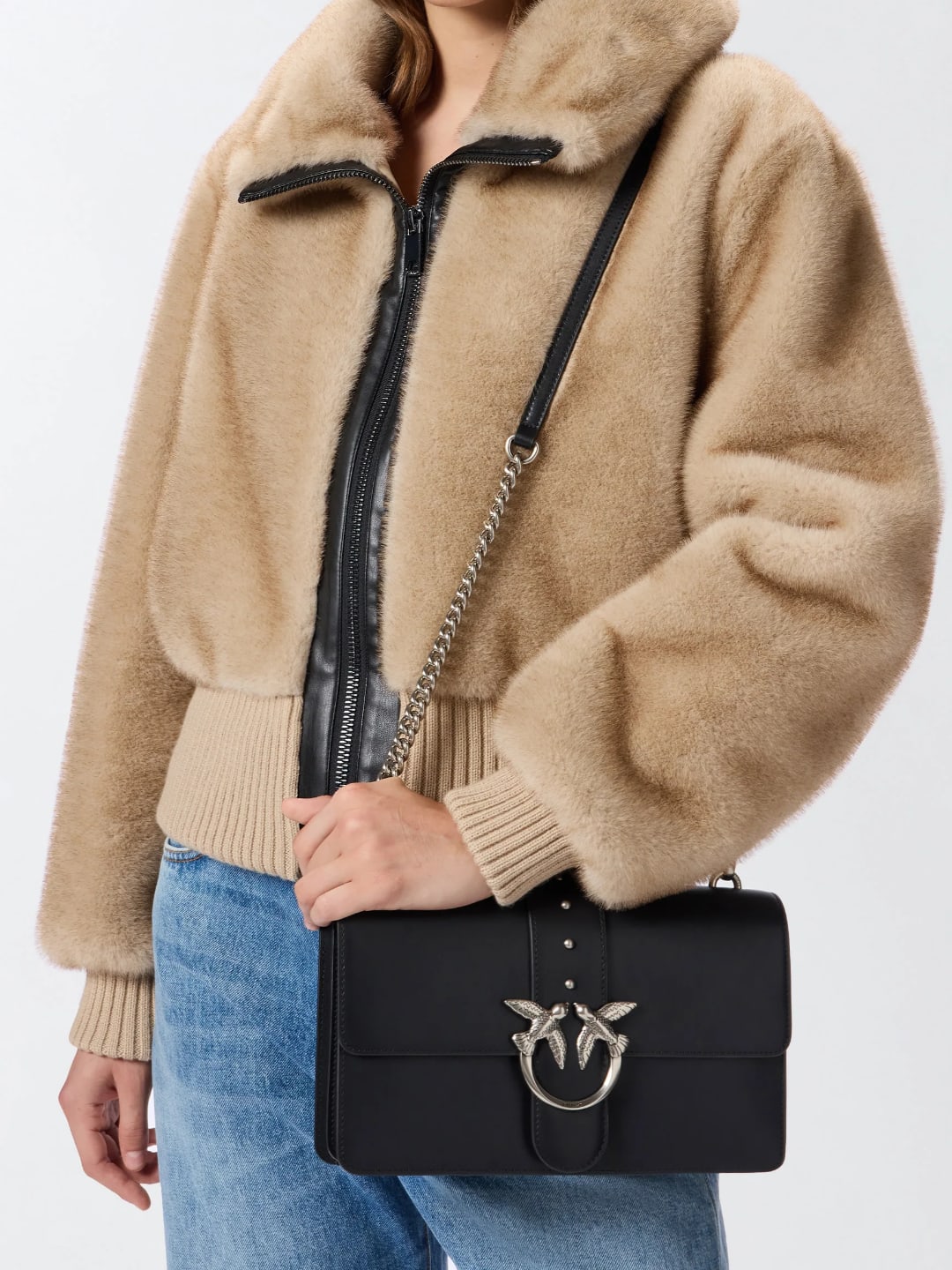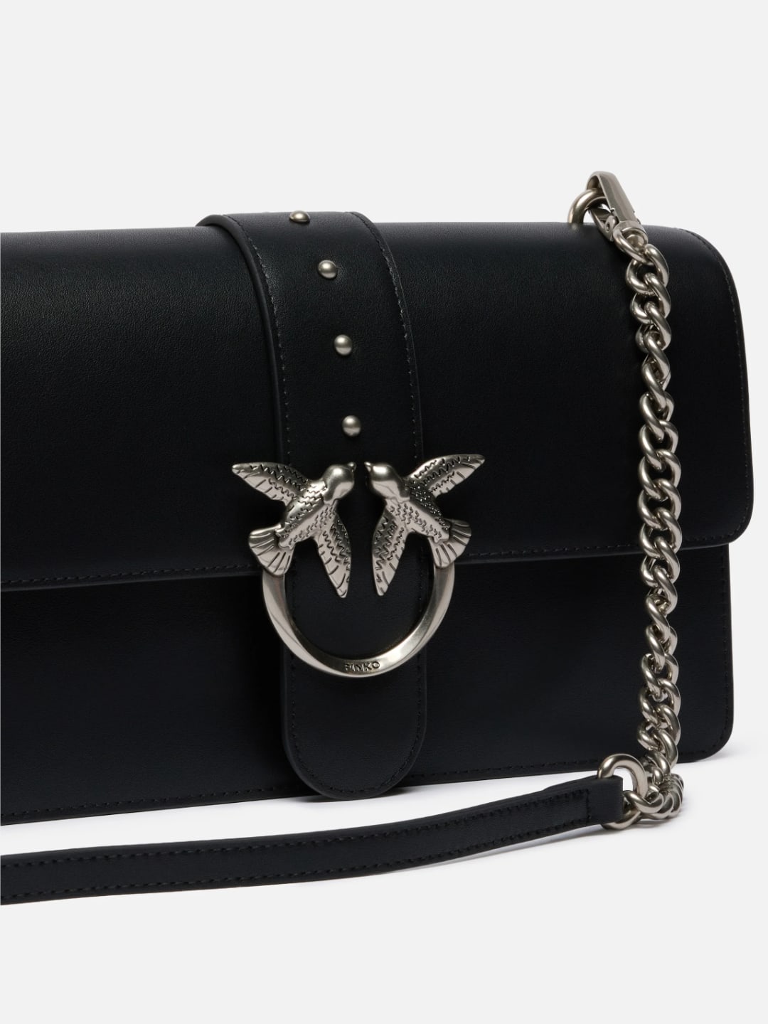 Borsa a mano media Love Bag One realizzata in pelle dalla mano seta. Caratterizzato dalla tracolla regolabile e rimovibile in pelle e catena, il modello risulta estremamente versatile e pratico. La chiusura a baccello con bottone magnetico è completata da fibbia con logo uccellini Love Birds Diamond Cut e piccole borchie in metallo. L'interno è foderato in cotone e presenta una tasca con zip per tenere al sicuro i tuoi essenziali. Attiva la tua borsa PINKO: verifica l'autenticità del tuo prodotto e accedi all'esperienza personalizzata avvicinando il tuo smartphone al ricamo Love Birds che trovi sul retro della borsa!