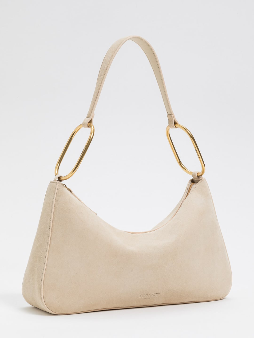 Twinset Borsa 'Liliane' media in suede con anelli Delicate Sand