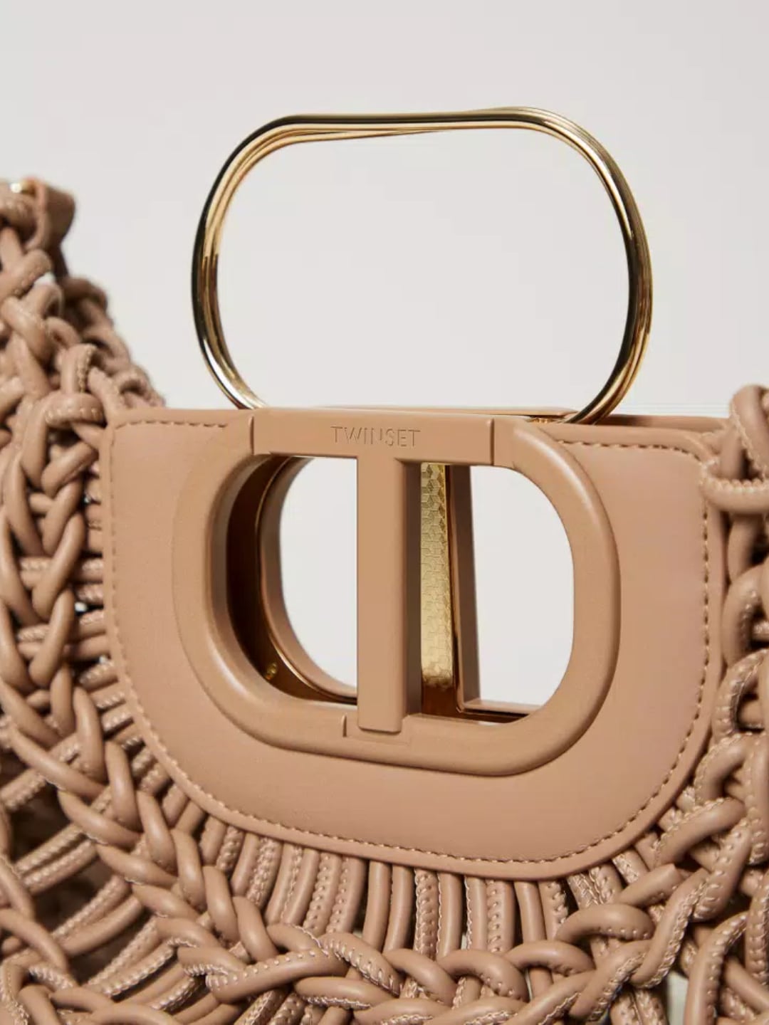 Twinset Borsa shopper Lila con manico Oval T Natural Beige