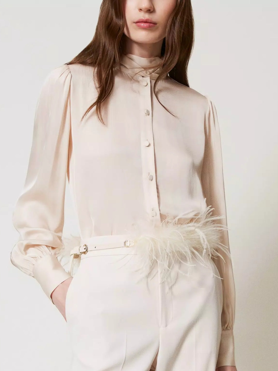 Twinset Cintura con piume e Oval T Old White
