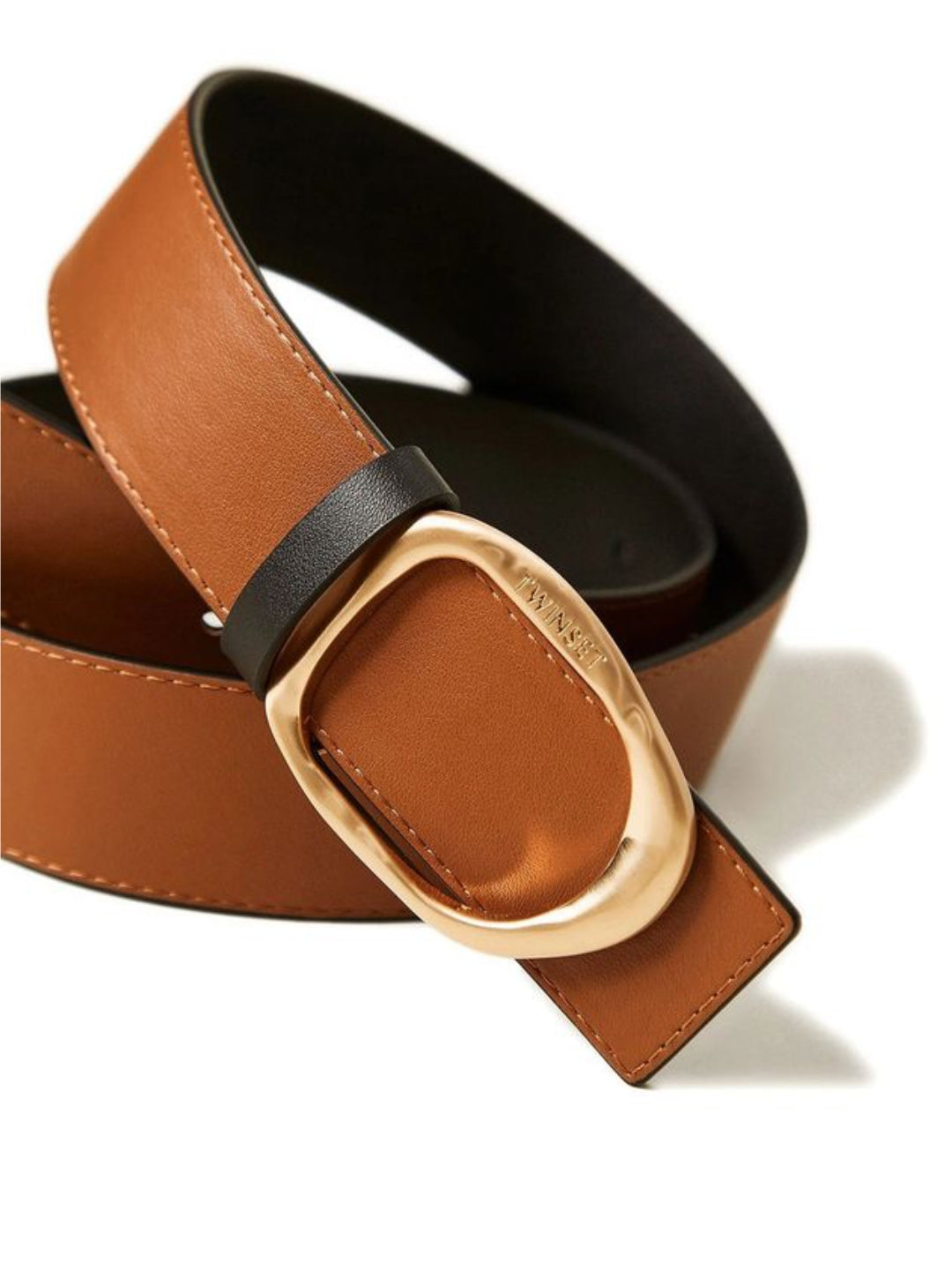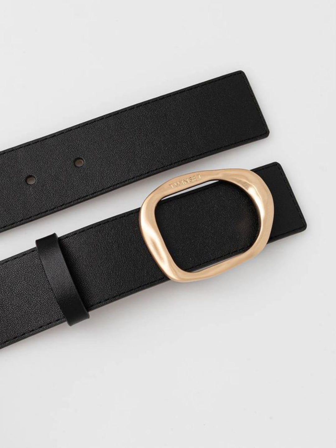 - Design: modello lineare e raffinato con fibbia ovale in metallo dorato lucido, personalizzata con logo Twinset inciso.