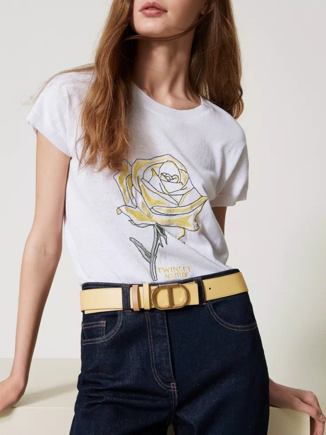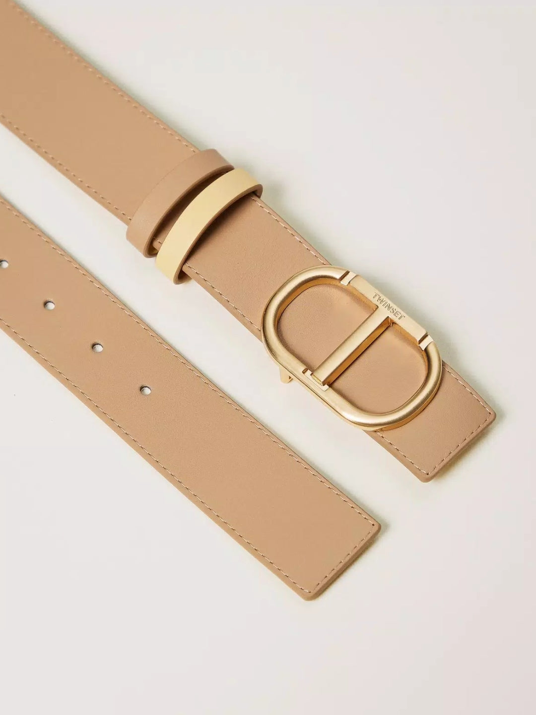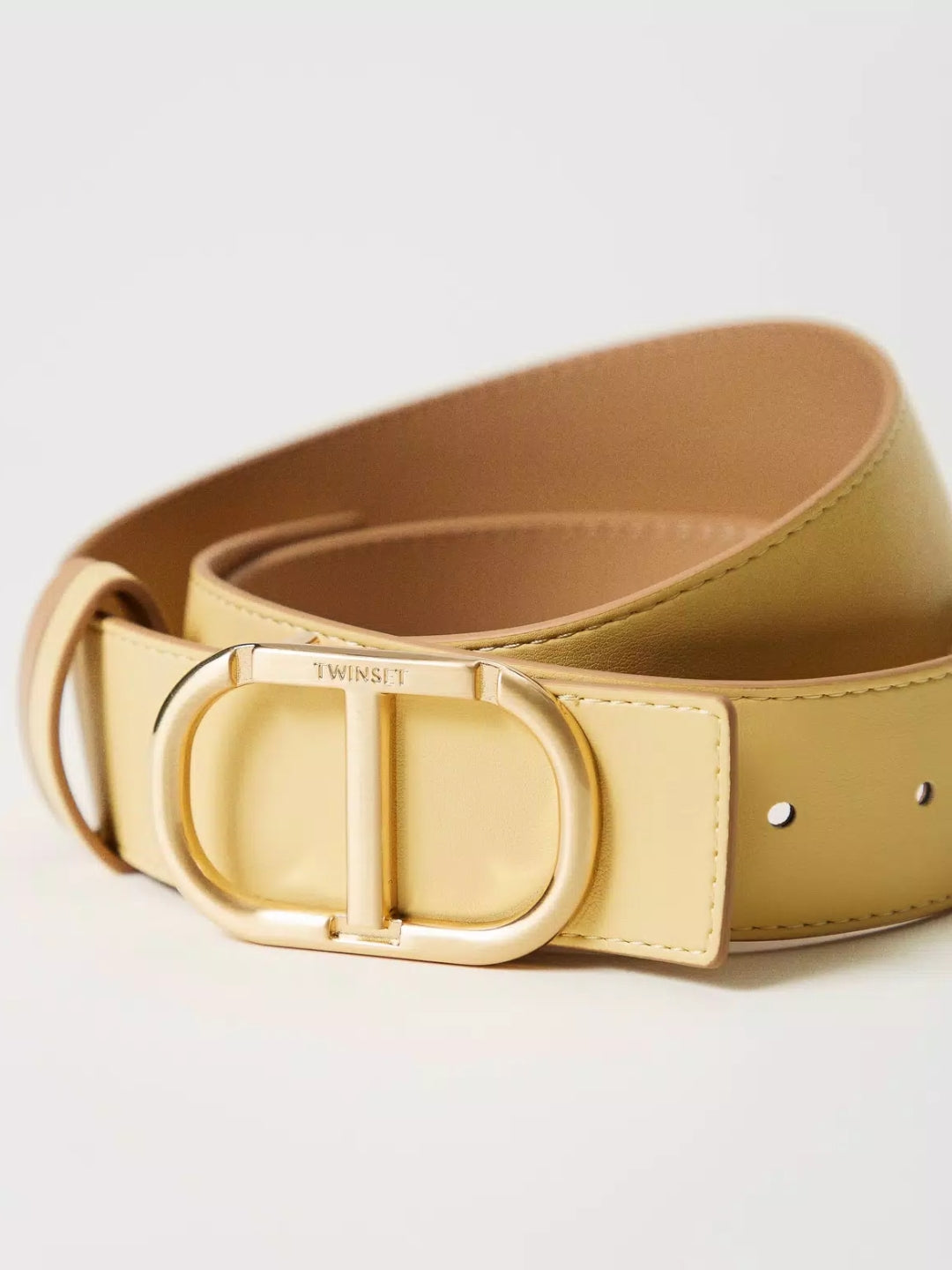 Twinset Cintura reversibile con fibbia Oval T Bicolor Beige "Rope" / Pale Yellow