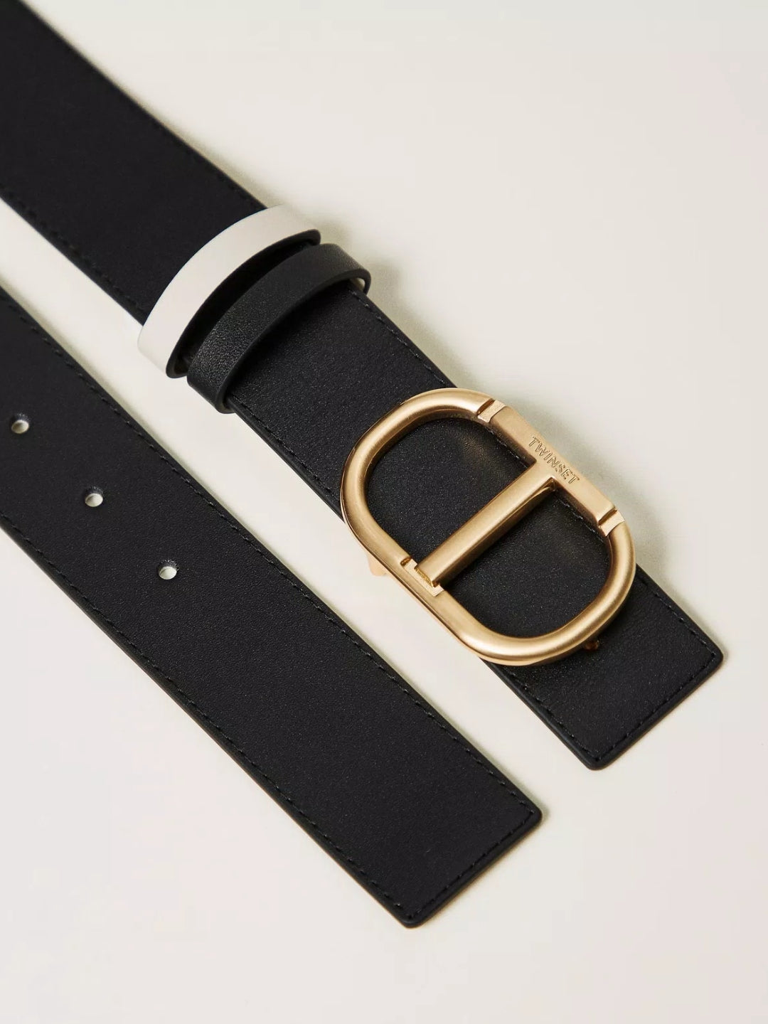 Twinset Cintura reversibile con fibbia Oval T Nero Bianco