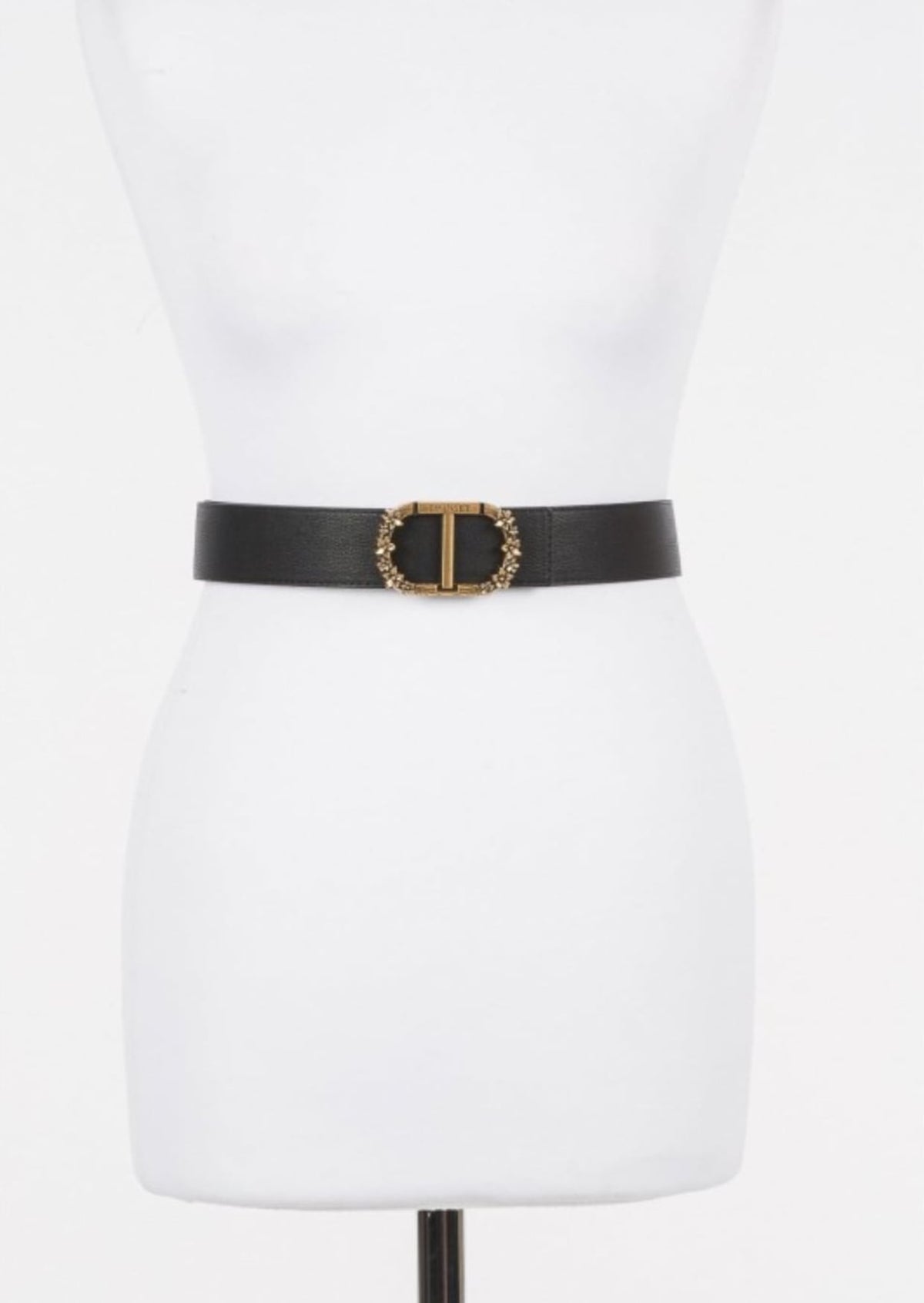 Cintura made in Italy reversibile a vita bassa in pelle con fibbia Oval T rimovibile in galvanica oro, passante a contrasto o in tono a seconda dell'indosso.