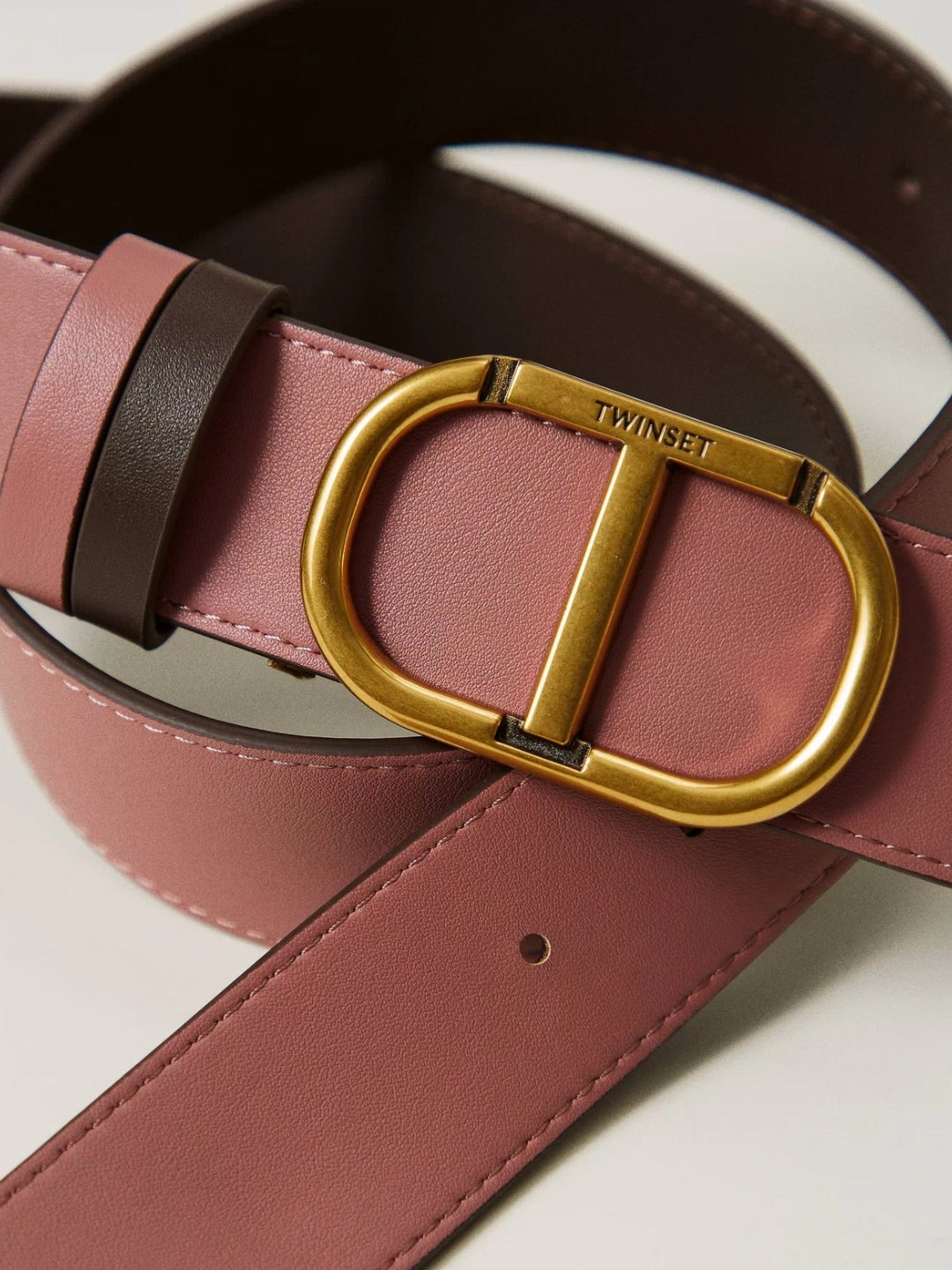 Twinset Cintura reversibile in pelle con Oval T Bicolor Coffe Chocolate / Chocolate