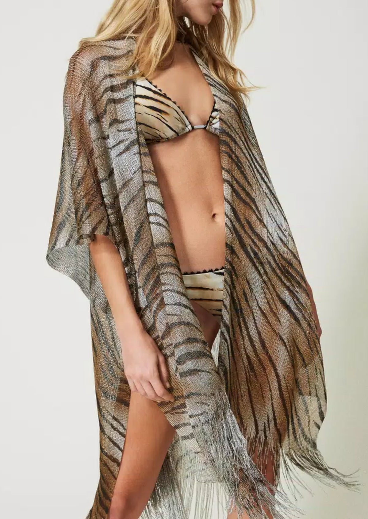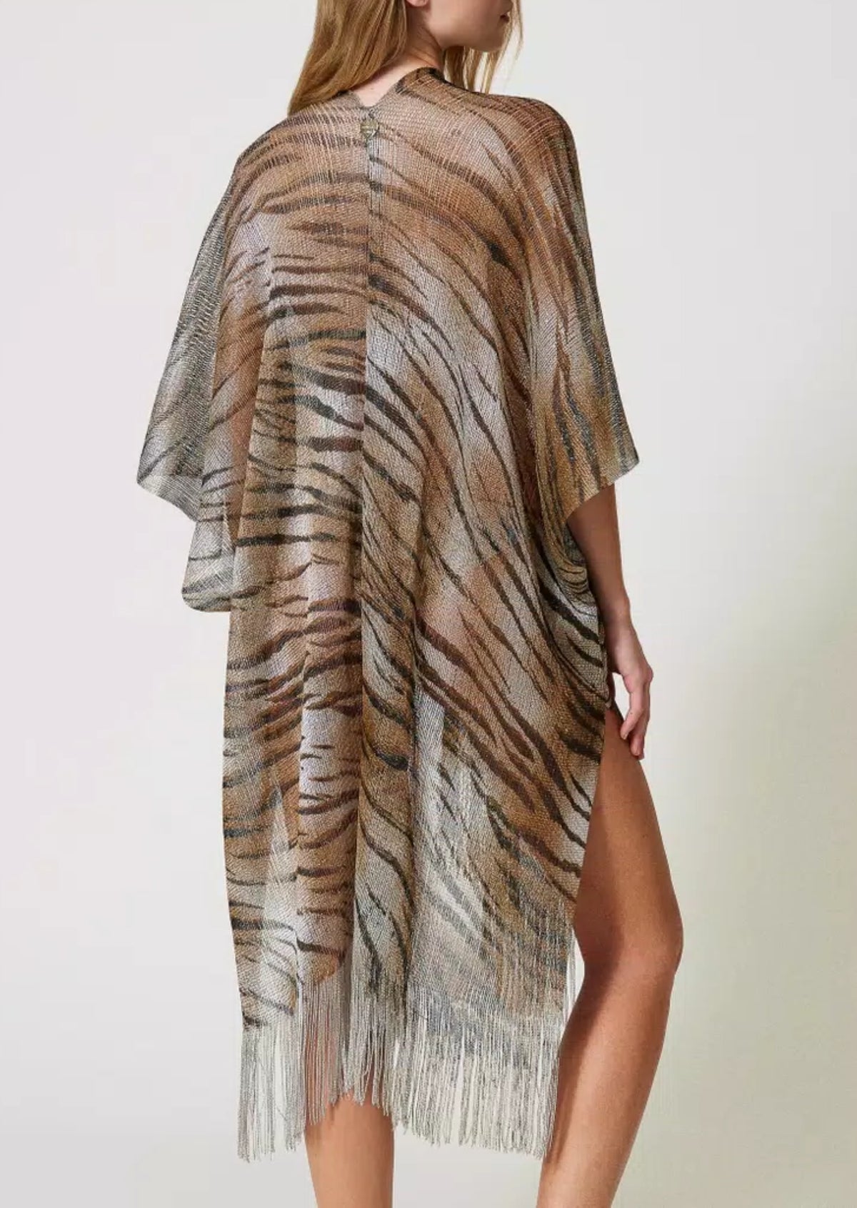 Twinset Poncho a rete a Stampa Animalier