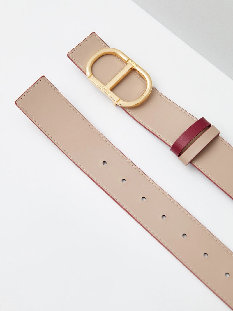Twinset Cintura reversibile in pelle con Oval T Bicolor Lampone Beige