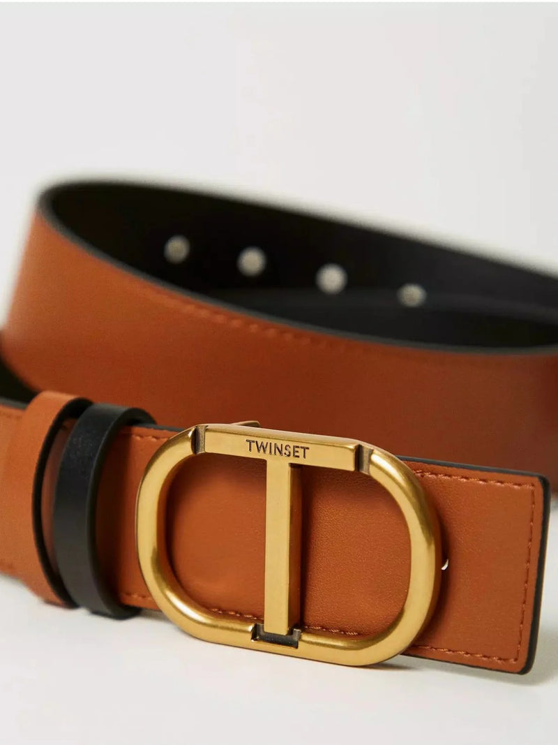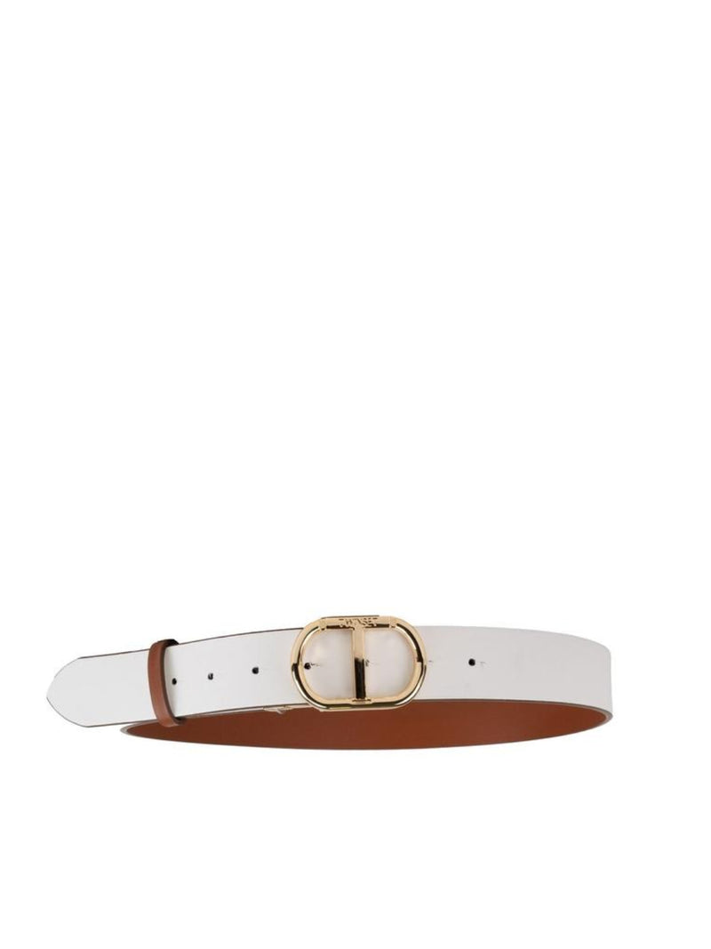 Twinset Cintura reversibile in pelle sintetica con fibbia Oval T Cuoio / Bianco