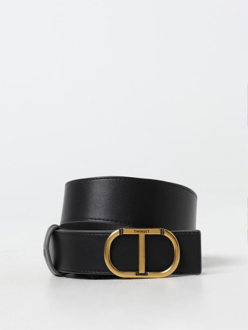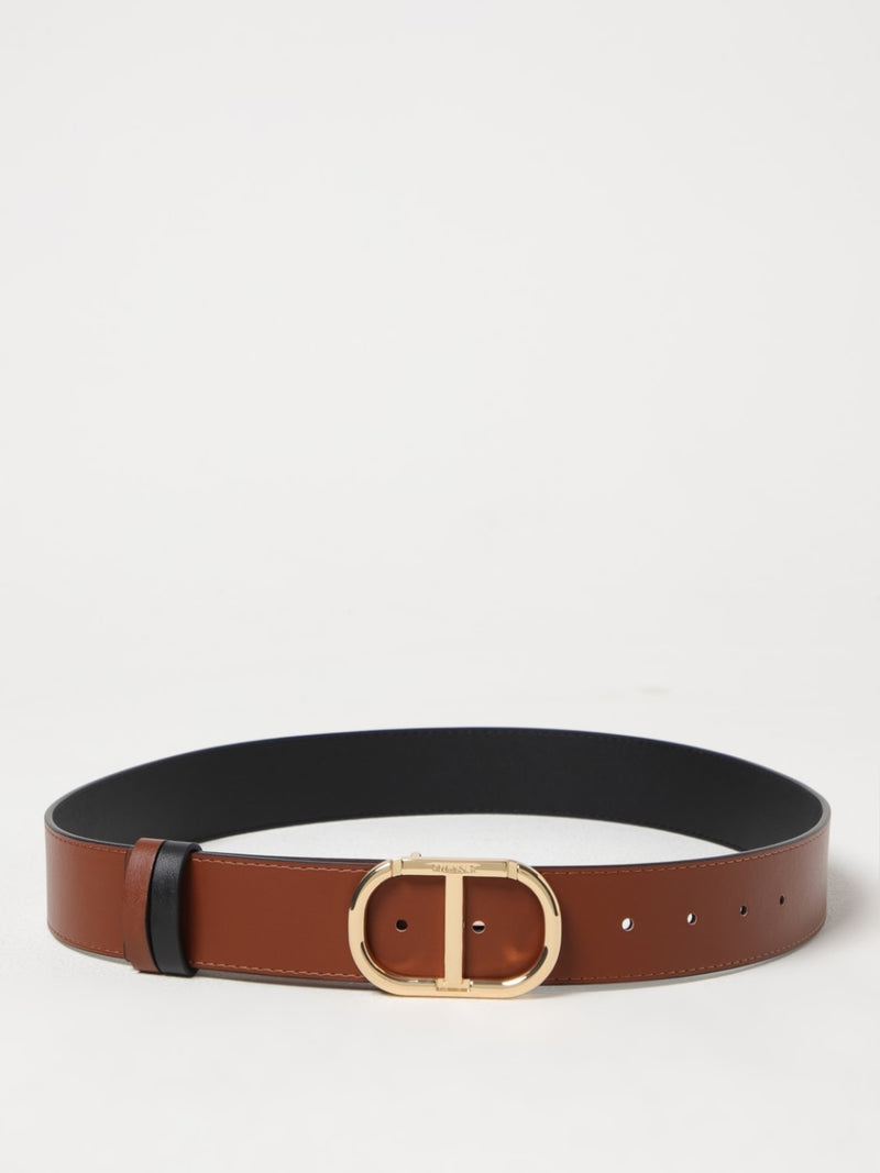 Twinset Cintura in pelle reversibile Oval T Nero / Land