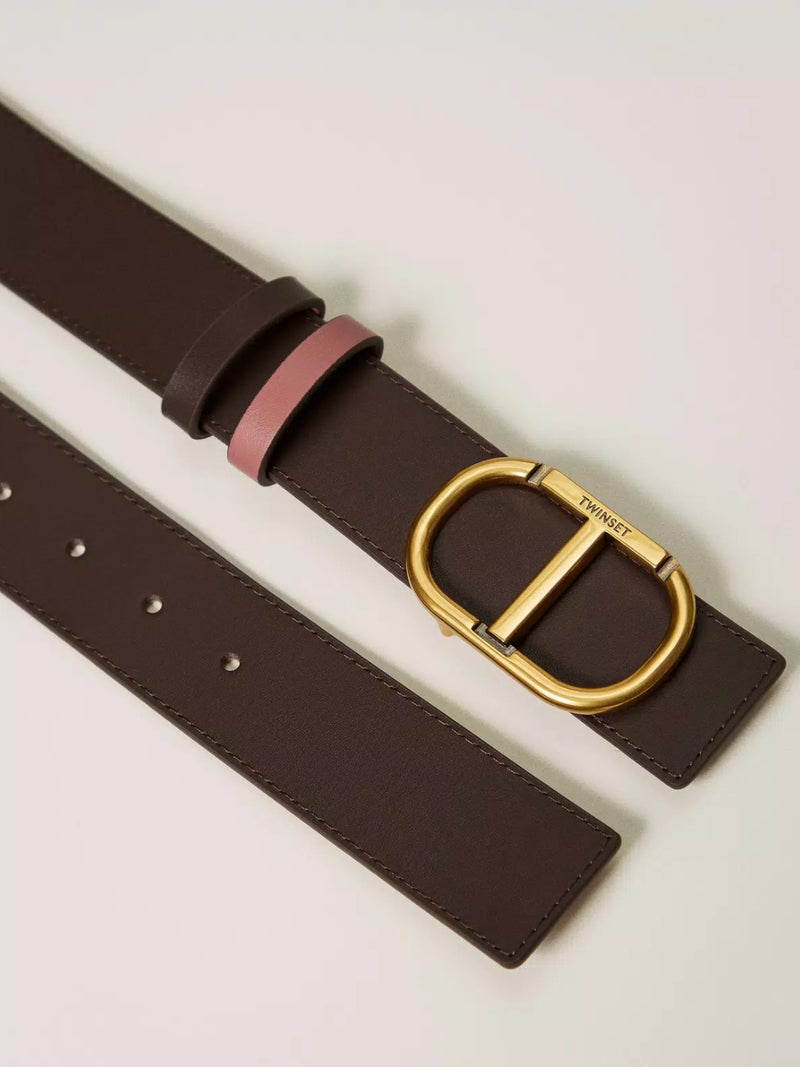 Twinset Cintura reversibile in pelle con Oval T Bicolor Coffe Chocolate / Chocolate