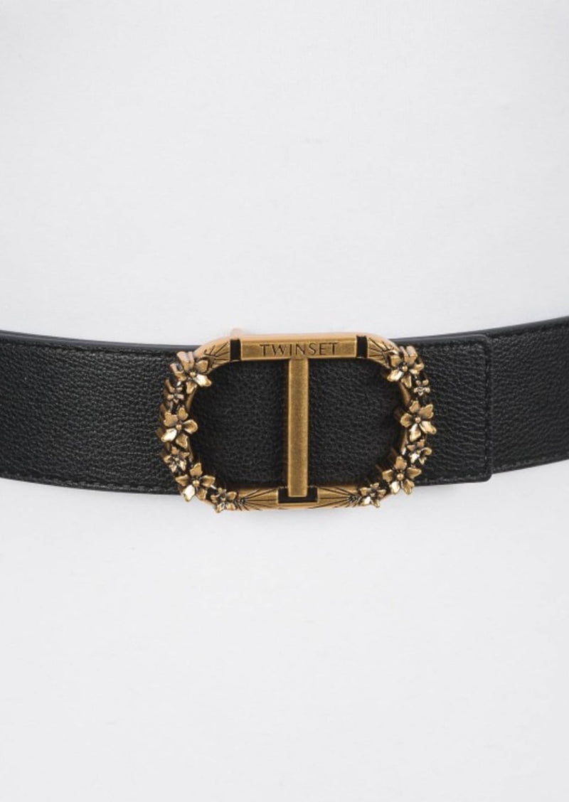 Twinset Cintura reversibile con fibbia Oval T Nero Delicate Beige