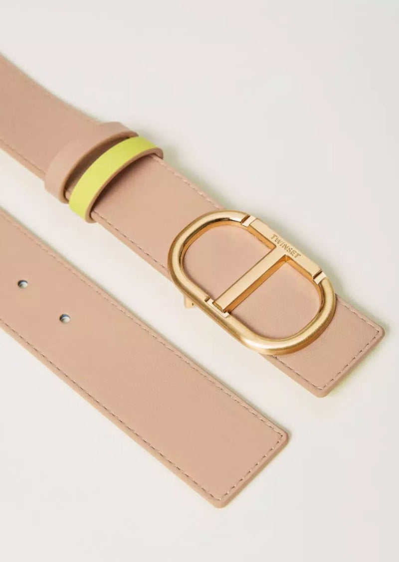 Twinset Cintura reversibile con doppio passante Hazelnut Light Lemon