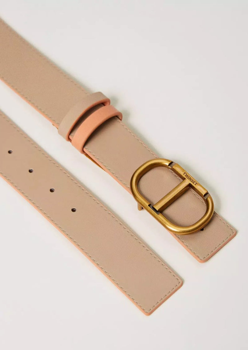 Twinset Cintura reversibile in pelle con passanti Light Orange Beige
