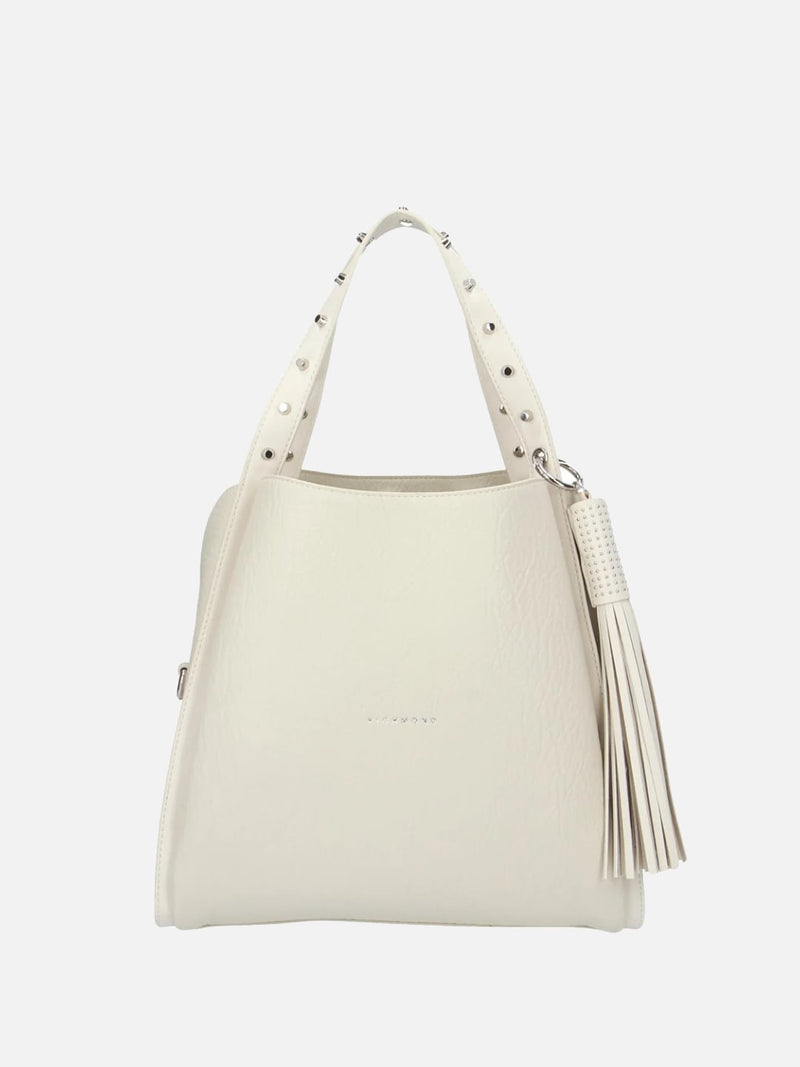 Richmond Borsa a mano con borchie e nappina Bianco