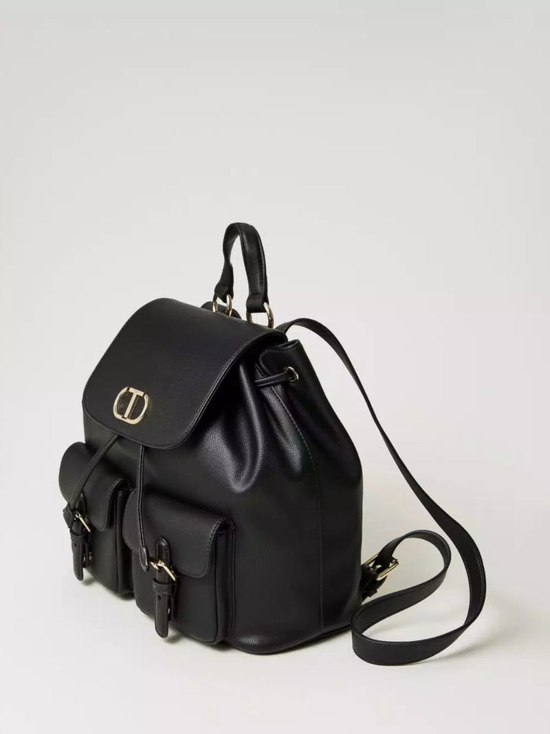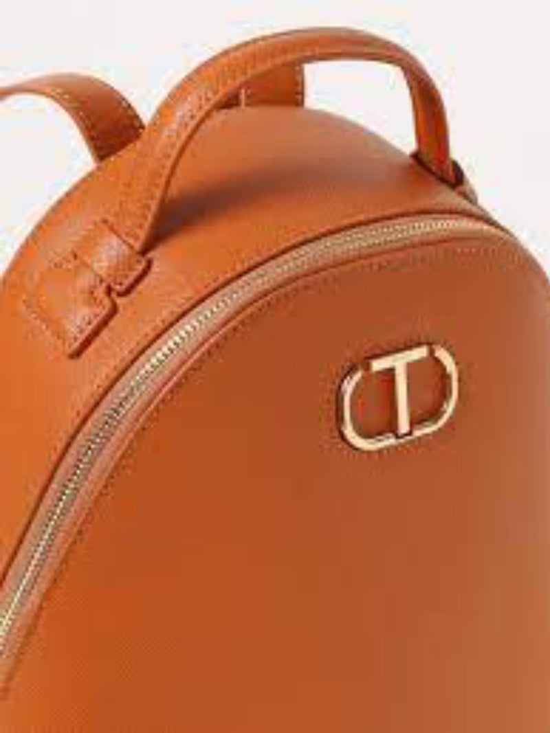 Zaino effetto pelle di vitello con logo Oval T Taupe