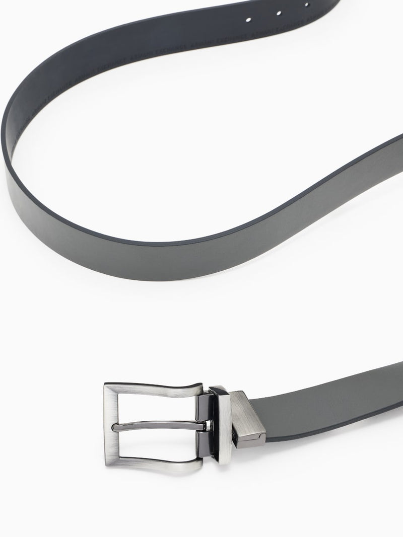 Armani Exchange Cintura in Pelle con Logo Deep Navy / Dark Gull