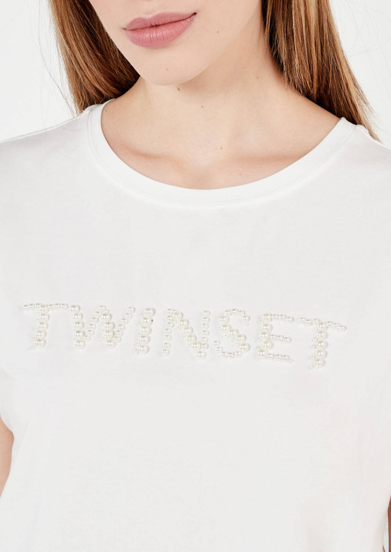 Twinset T-shirt con Logo con Perle Bianco