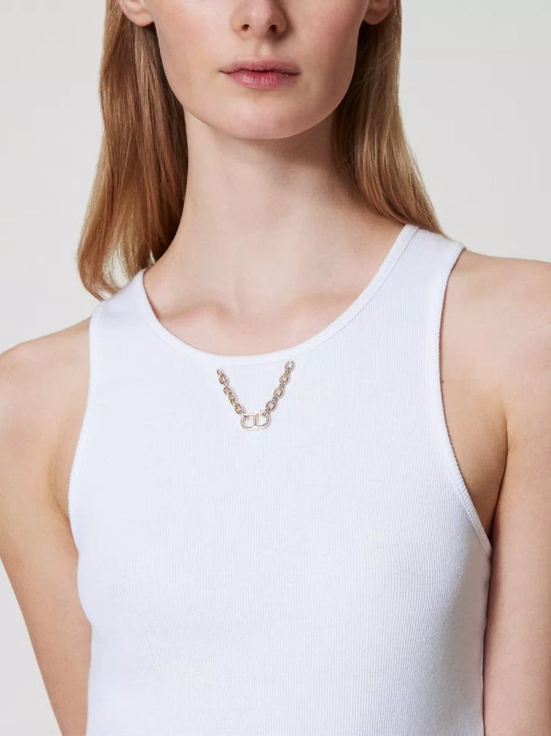 Twinset Top a costine con catena Bianco Ottico