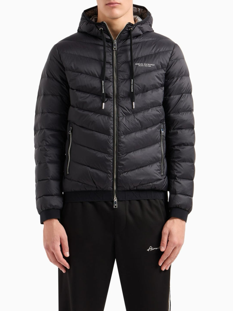 Armani Exchange Piumino Fullzip con Cappuccio Nero