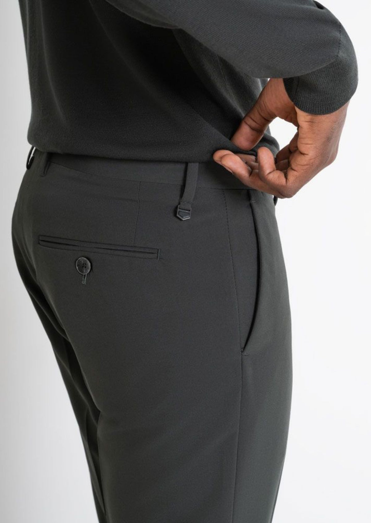 Pantaloni con tasca alla francese e due tasche a filetto sul dietro
