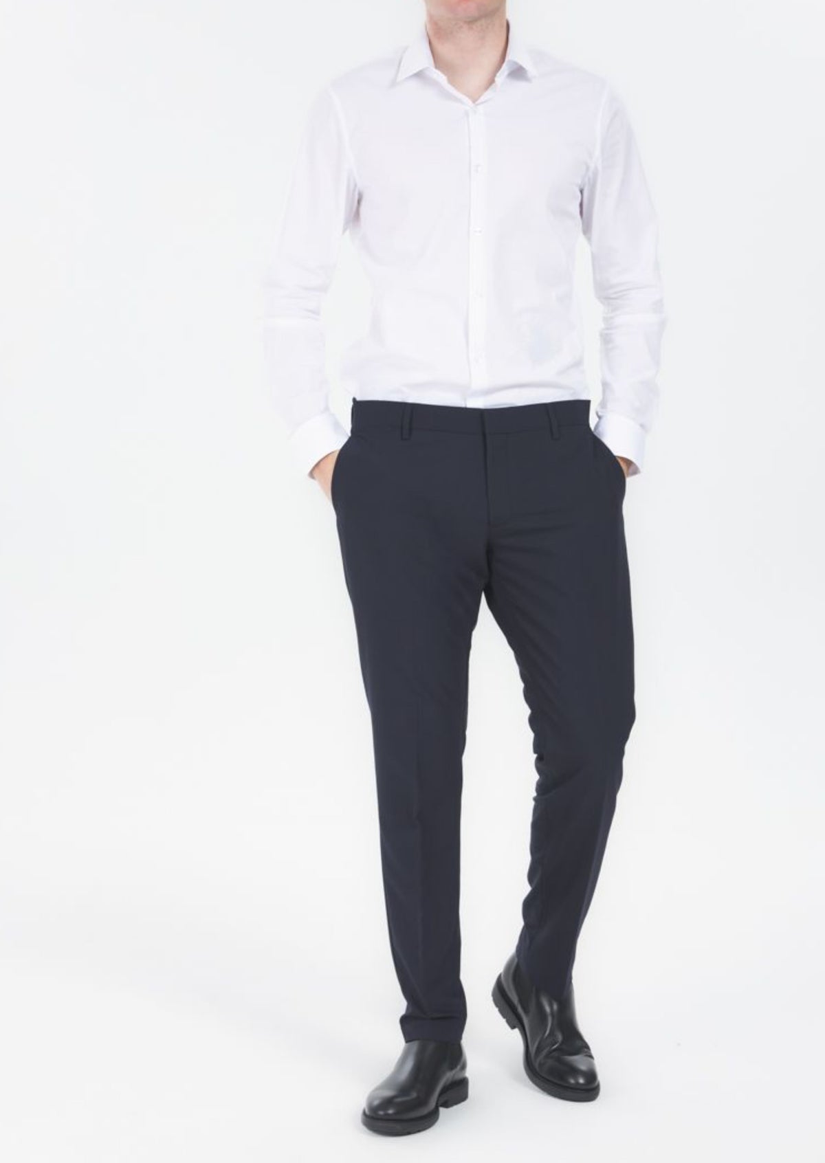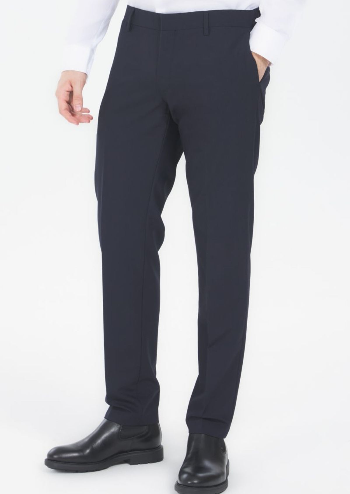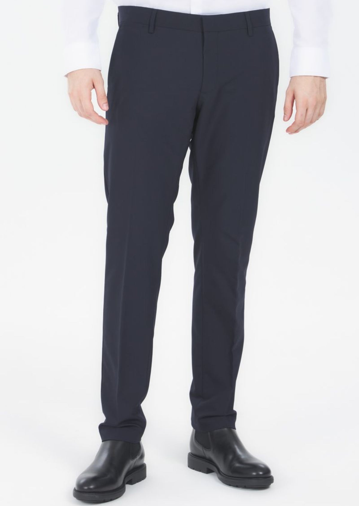 Antony Morato firma questi eleganti pantaloni con vestibilita' slim realizzati in tessuto misto di viscosa stretch. Il taglio classico e' completato da due tasche all’americana sul davanti e due tasche a filetto sul retro. La chiusura e' affidata ad una zip con gancio nascosto.