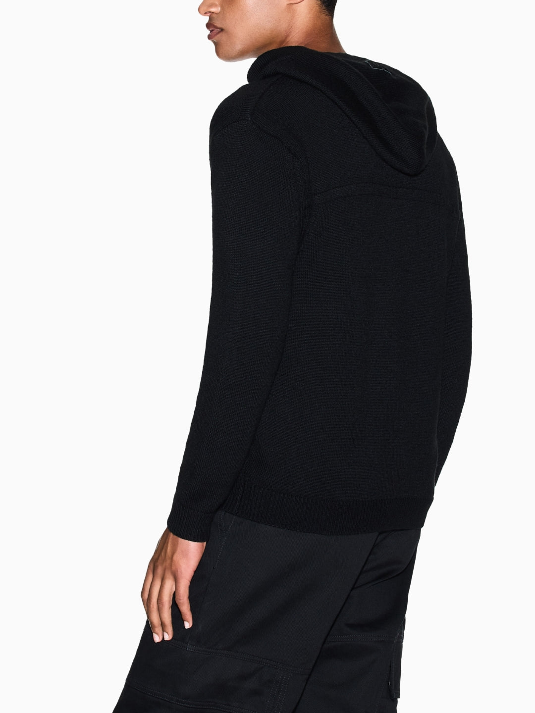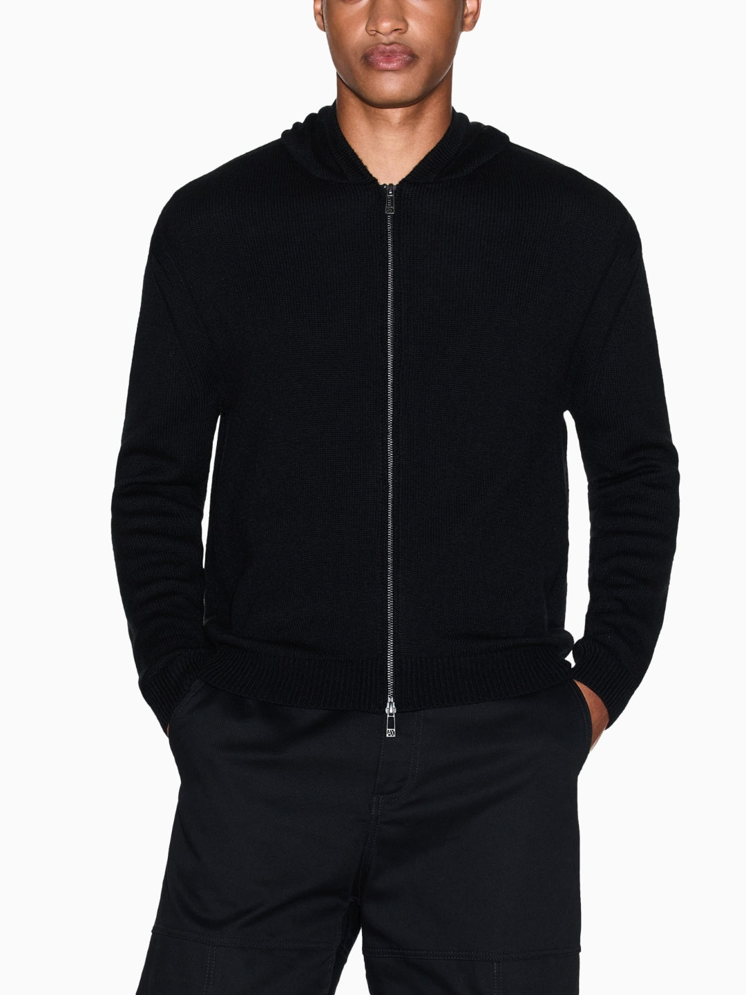 Armani Exchange Cardogan con Cappuccio e Zip in Misto Lana Nero