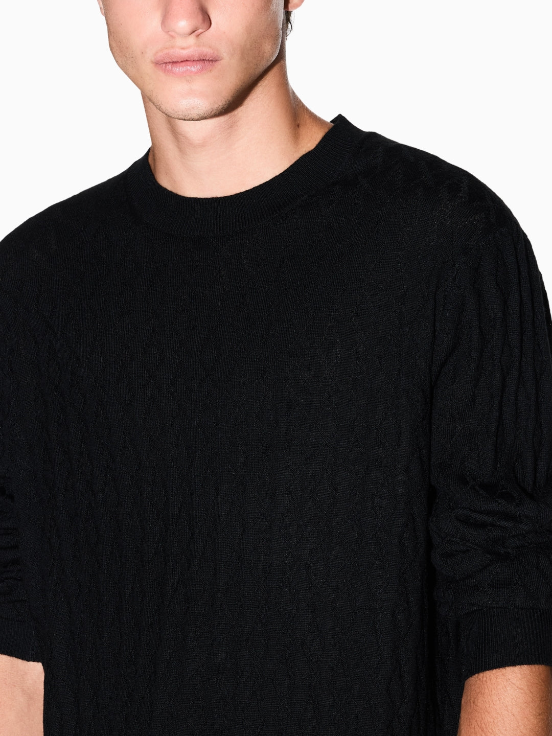 Armani Exchange Maglione a Girocollo Lavorazione a Onde Nero