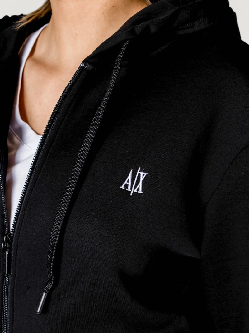 Armani Exchange Felpa con Cappuccio e zip da Donna Nero