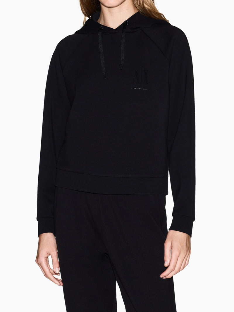 Armani Exchange Felpa con Cappuccio e Logo Glitterato da Donna Nero