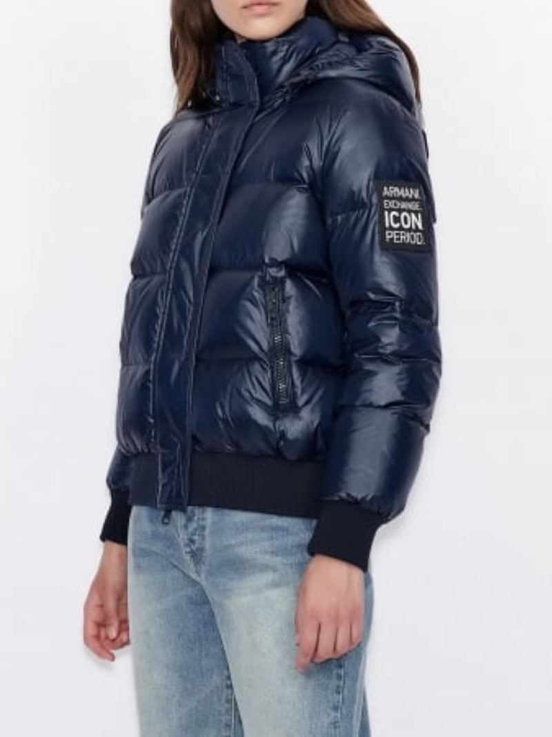 Armani Exchange Giubbino Bomber Imbottito Con Cappuccio Icon Project Blu