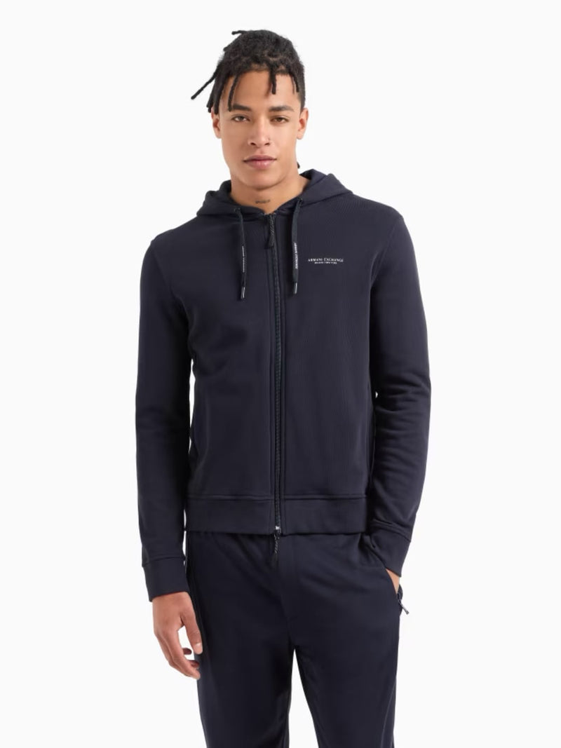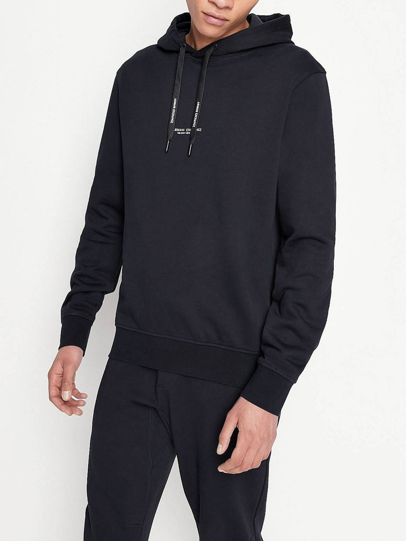 Armani Exchange FELPA CON CAPPUCCIO IN COTONE FRENCH TERRY CON LOGO Blu