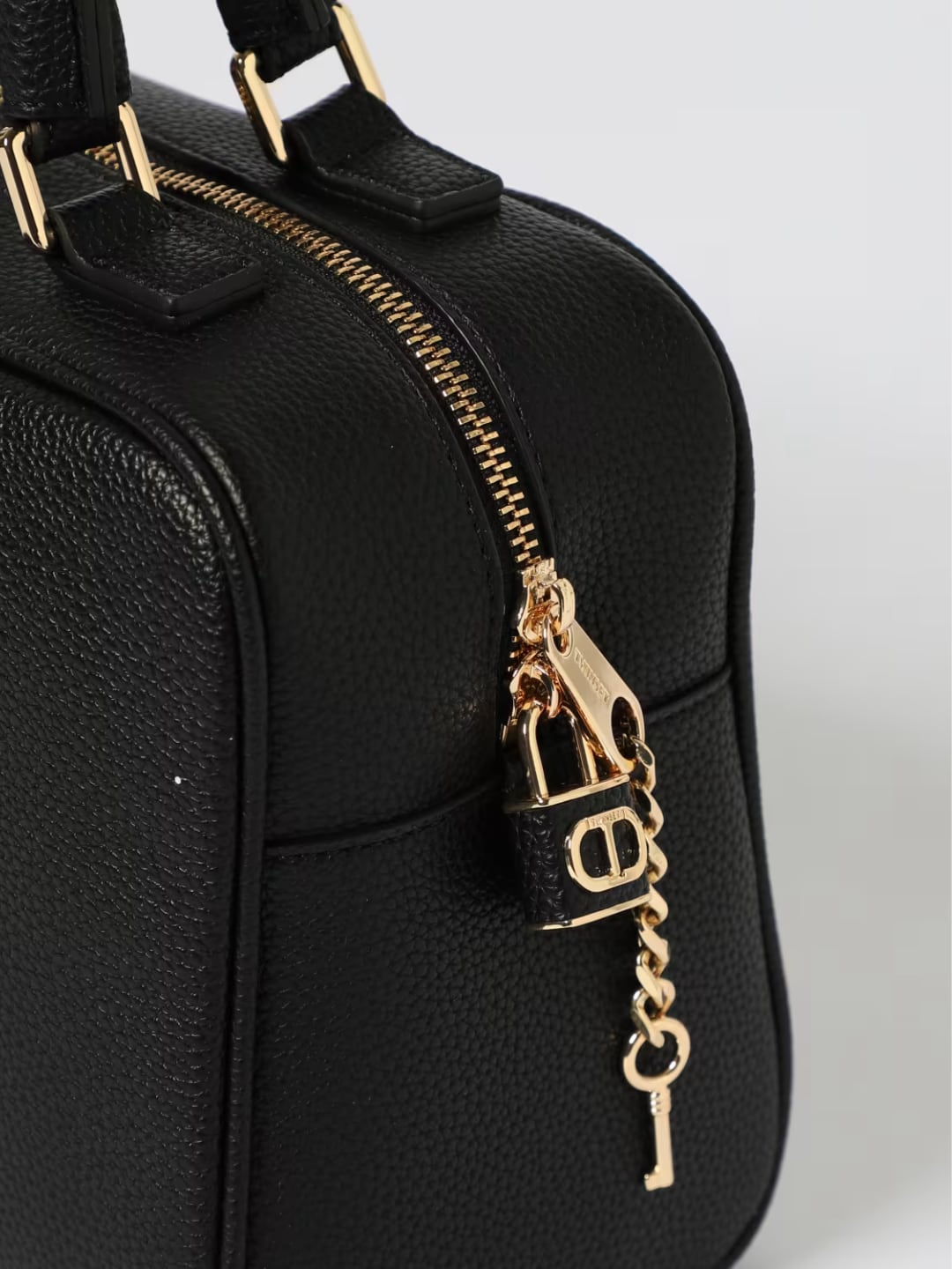 Borsa a bauletto effetto pelle a grana con doppio manico e tracolla e chiusura con doppia zip impreziosita di un lucchetto in tinta con chiave.